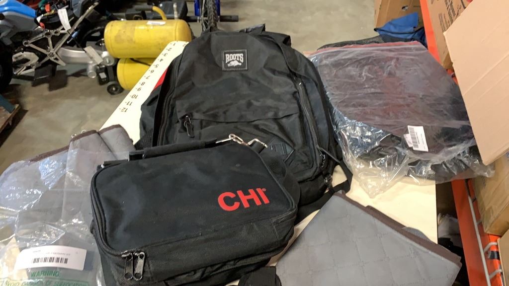 3 fabric organizers with 2 backpacks and sampler bag
