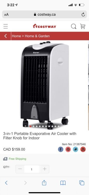 3-in-1 Portable Evaporative Air Cooler with Filter Knob for Indoor