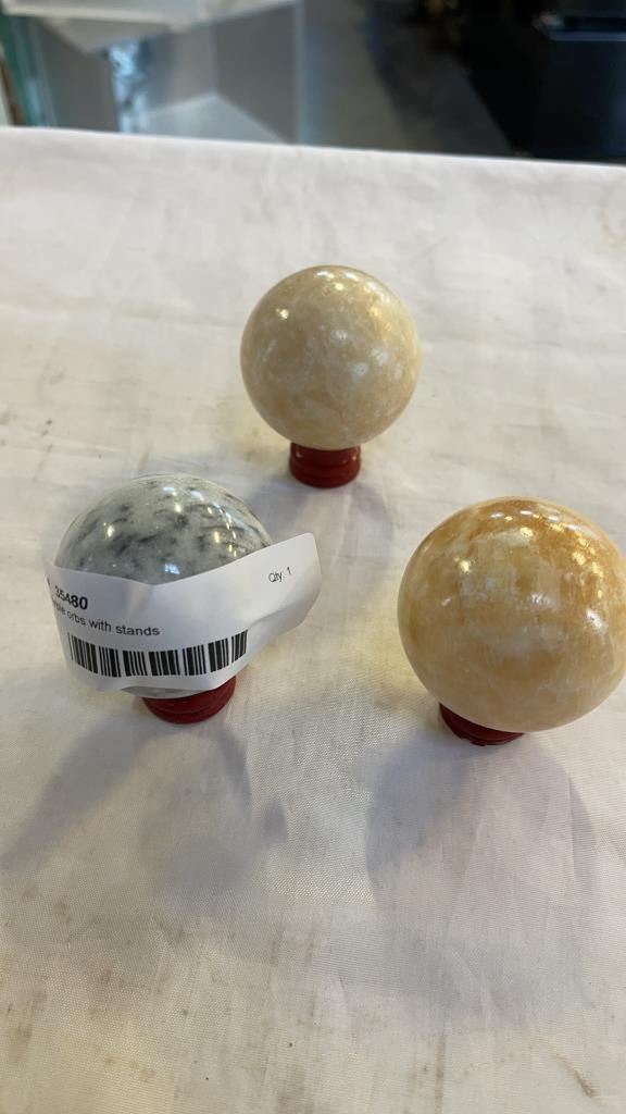 3 marble orbs with stands