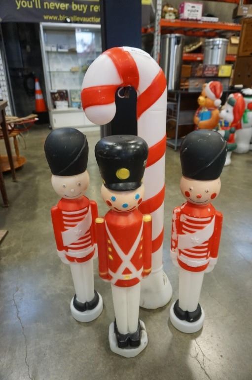 3 nutcracker and 40" tall candy cane christmas lawn ornaments