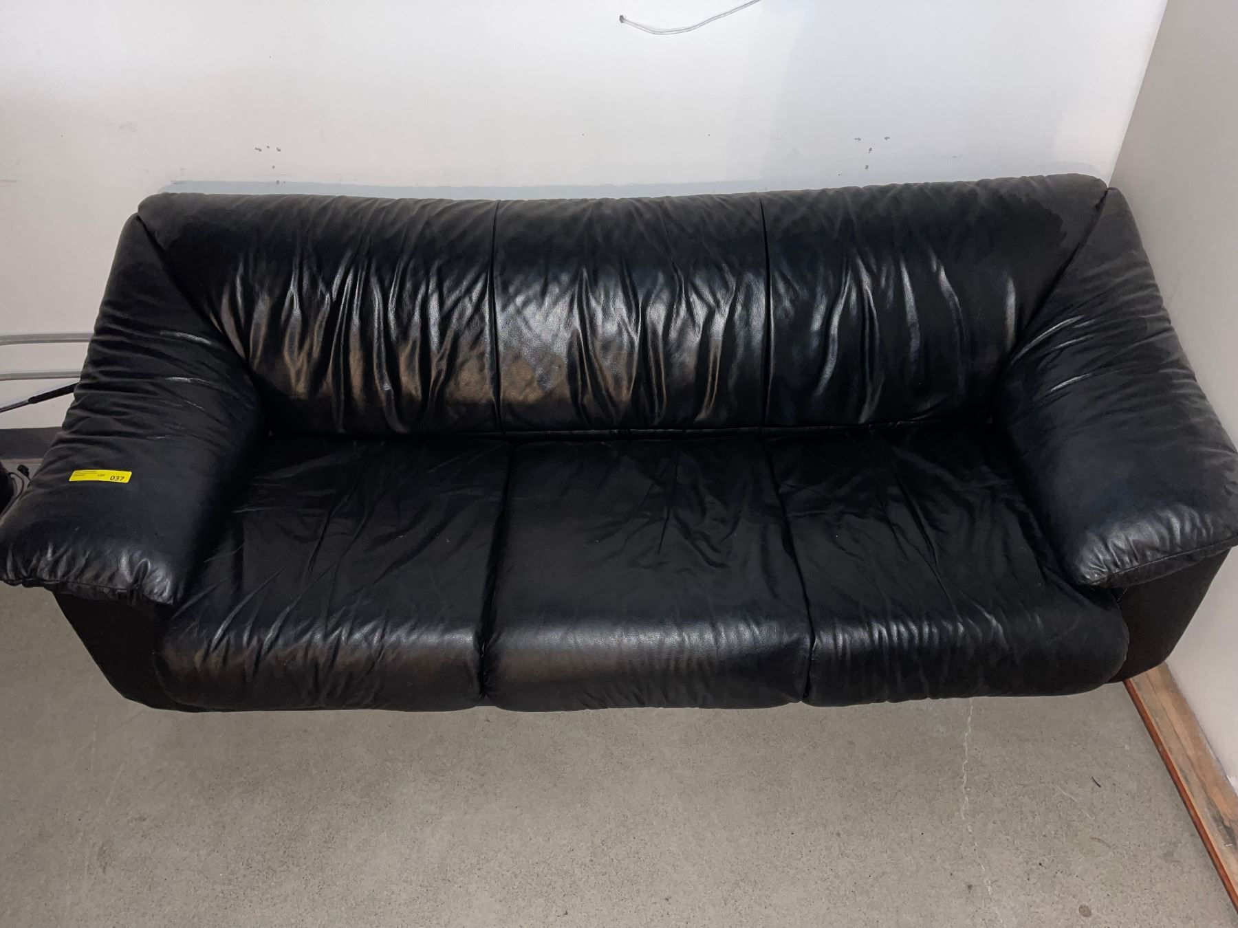 3 seat black leather sofa