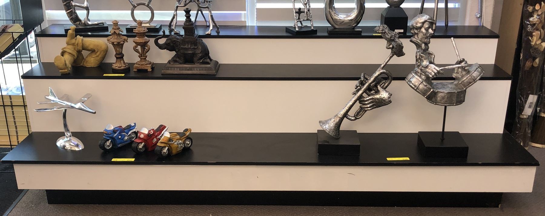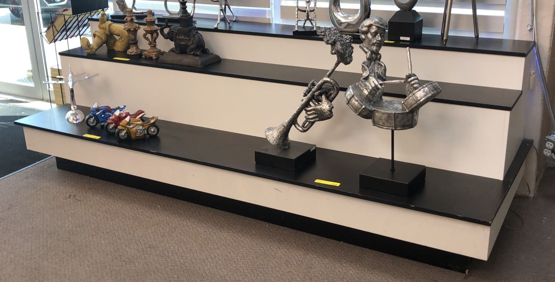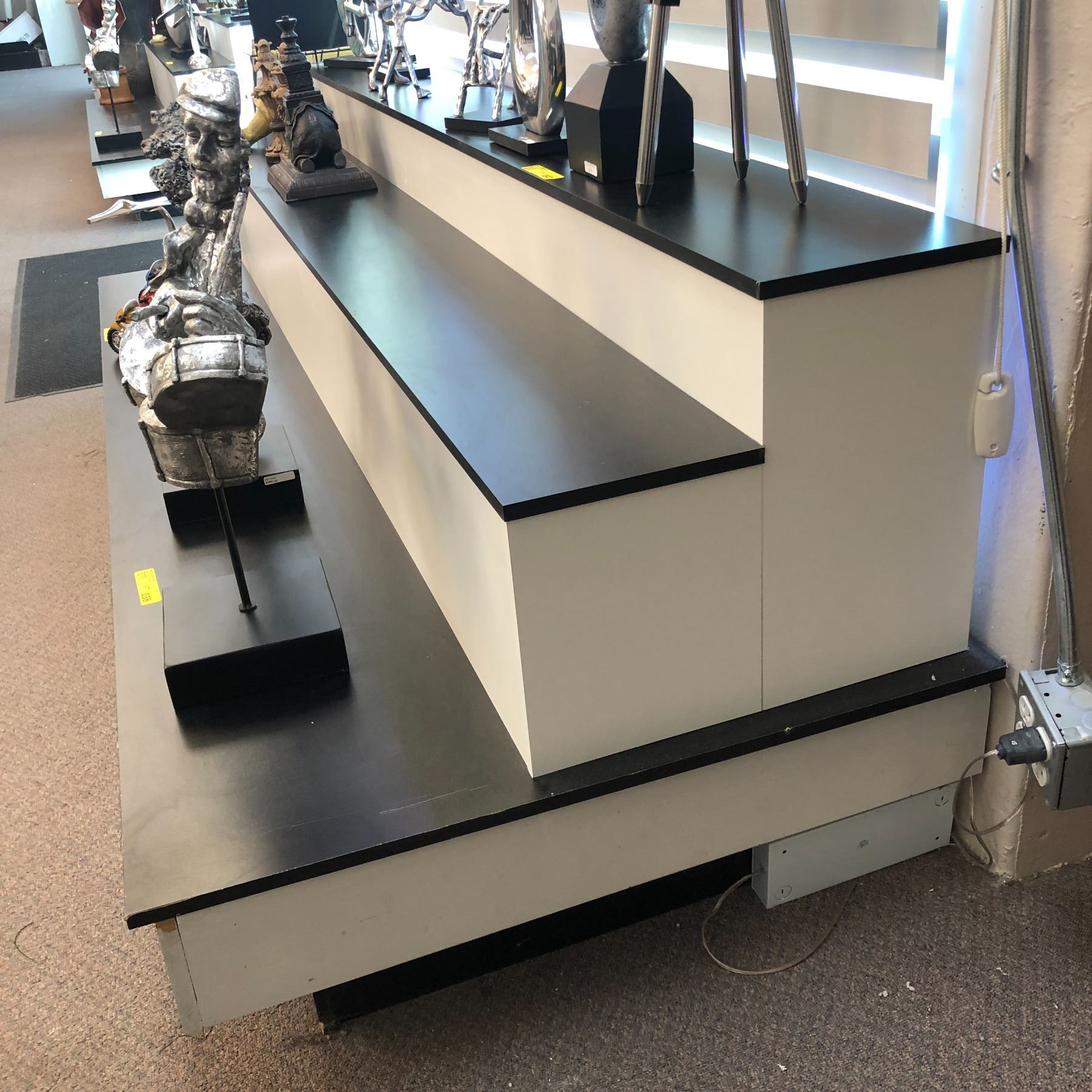 3 step stairs display showcase - approx. 97in wide x 3ft depth x 30in height bidder responsible for removal