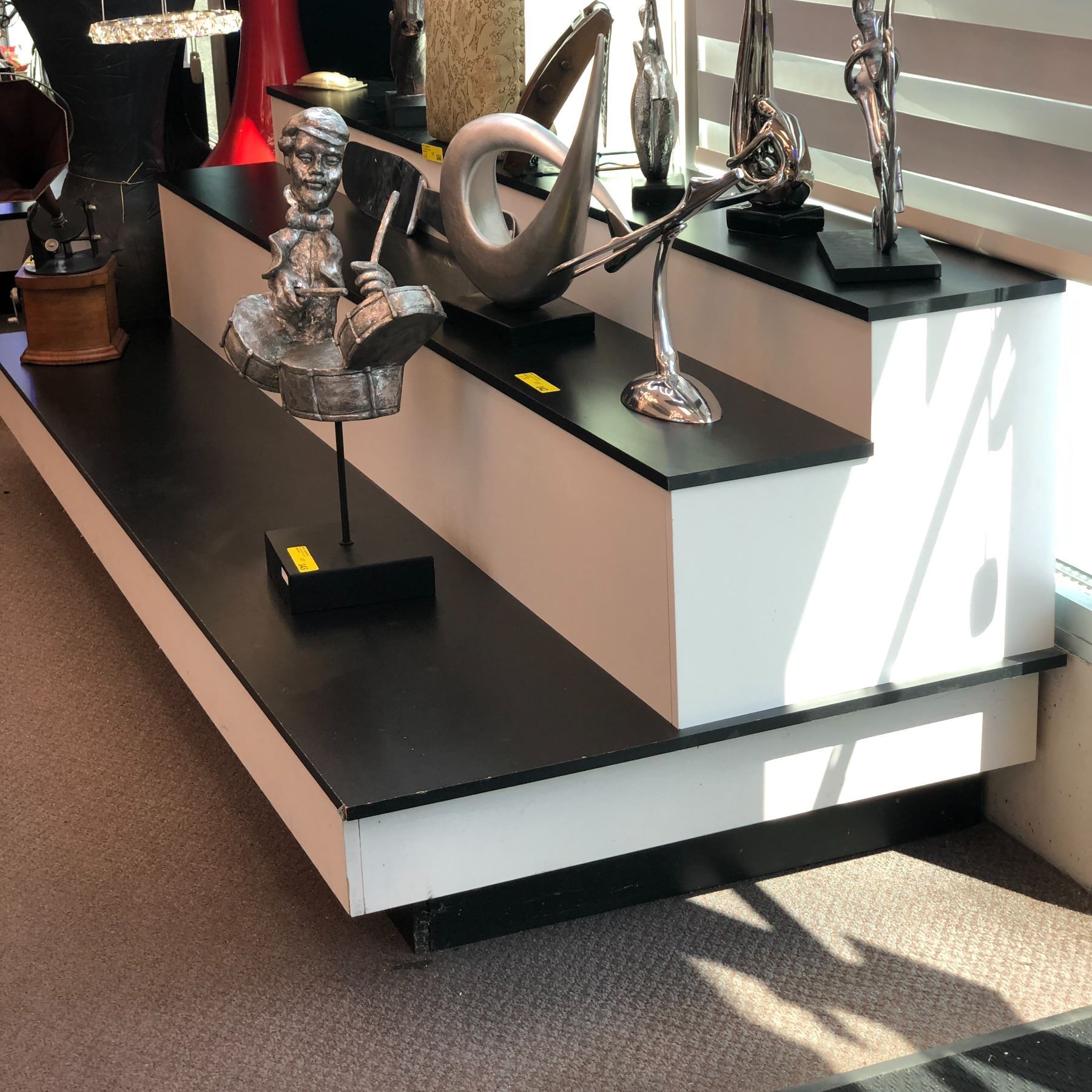 3 step stairs display showcase - approx. 97in wide x 3ft depth x 30in height bidder responsible for removal