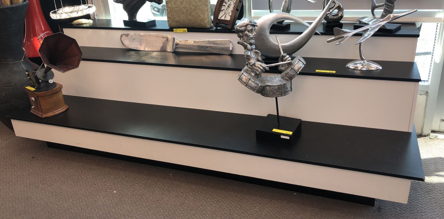 3 step stairs display showcase - approx. 97in wide x 3ft depth x 30in height bidder responsible for