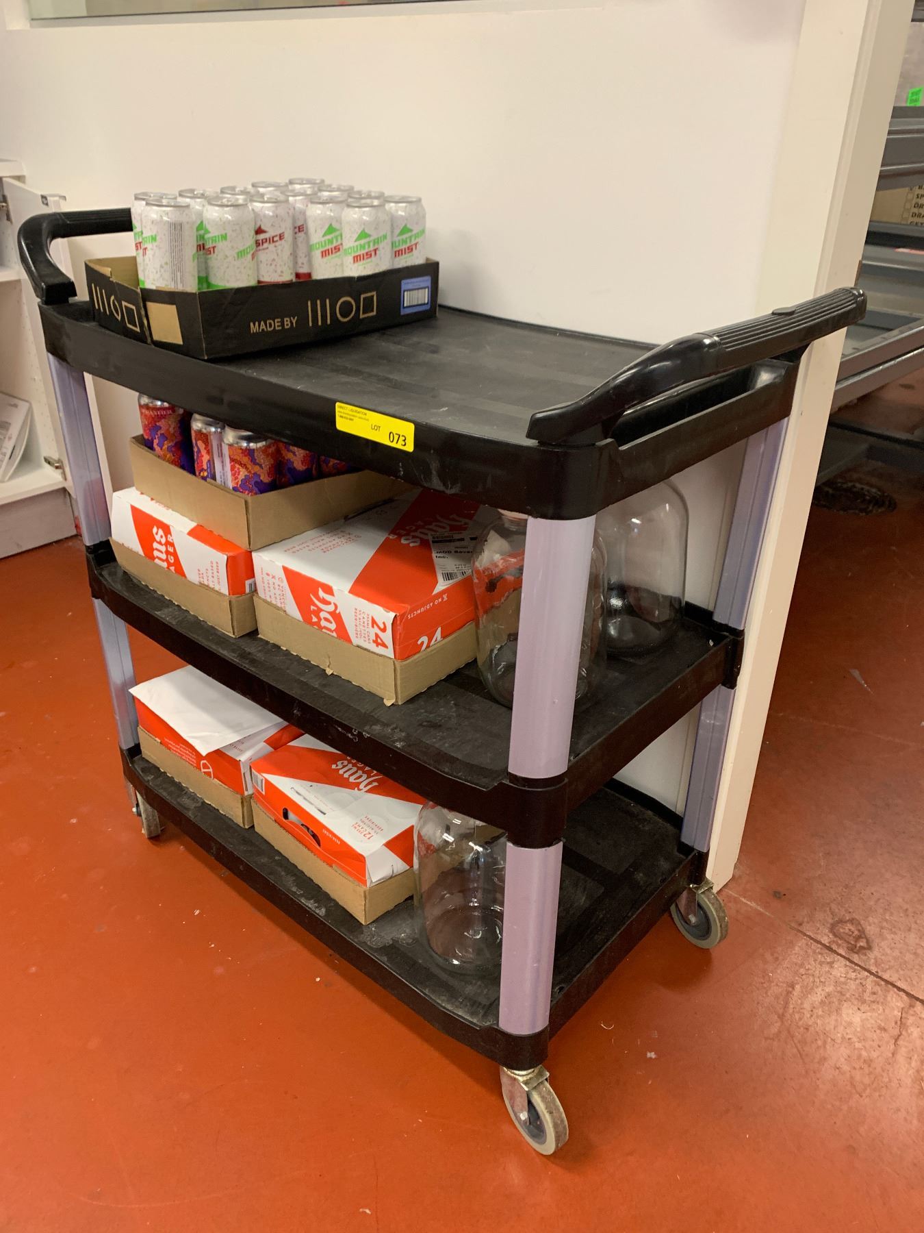 3 tier four wheel industrial rolling cart (CONTENTS NOT INCLUDED)