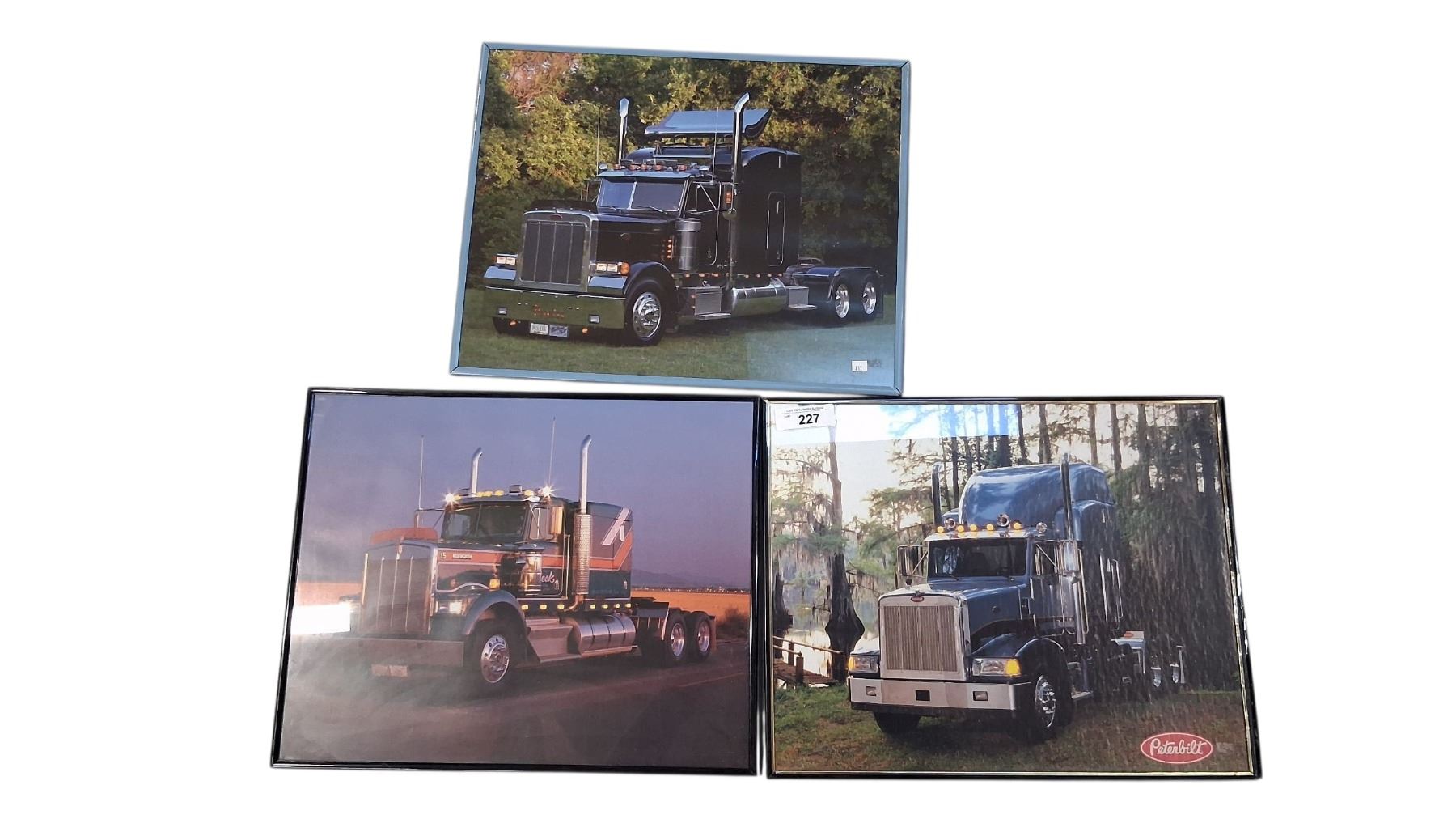 3 vintage framed semi truck pictures from PNE all 19"x16"