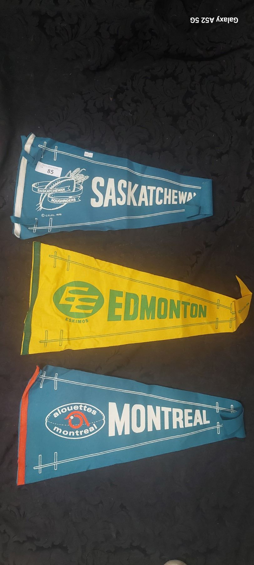3 vintage pennants Sask, Edmonton & Montreal