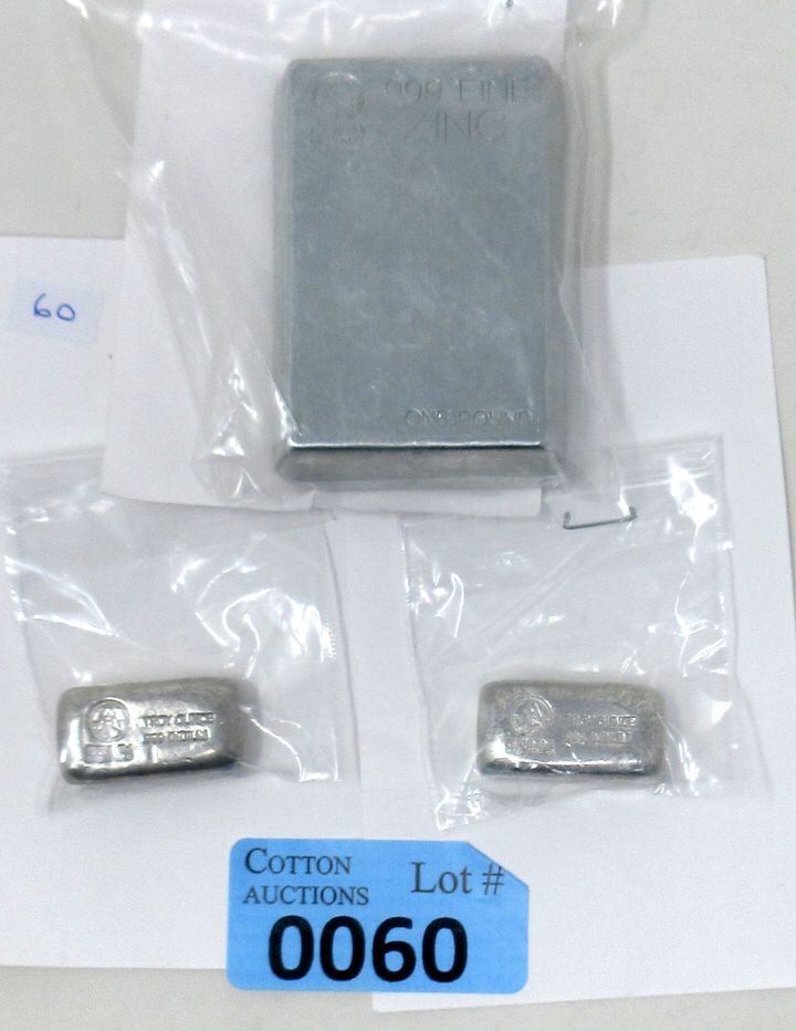 Grimm Metals. 1 Lbs Zinc Bar; and 2 x 1 Ounce Indium Bars.