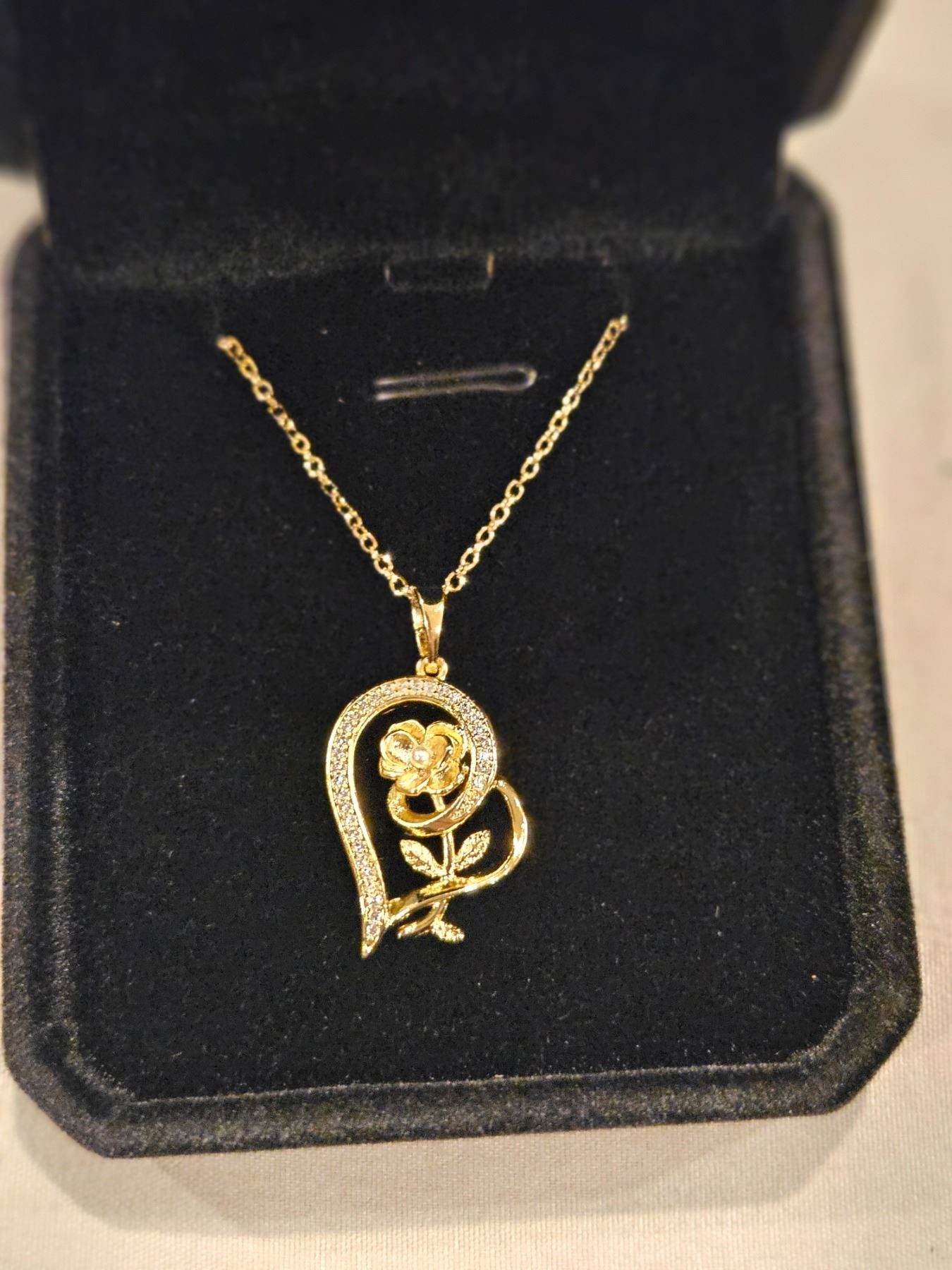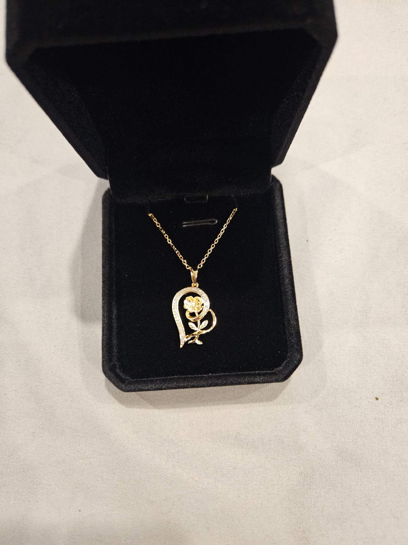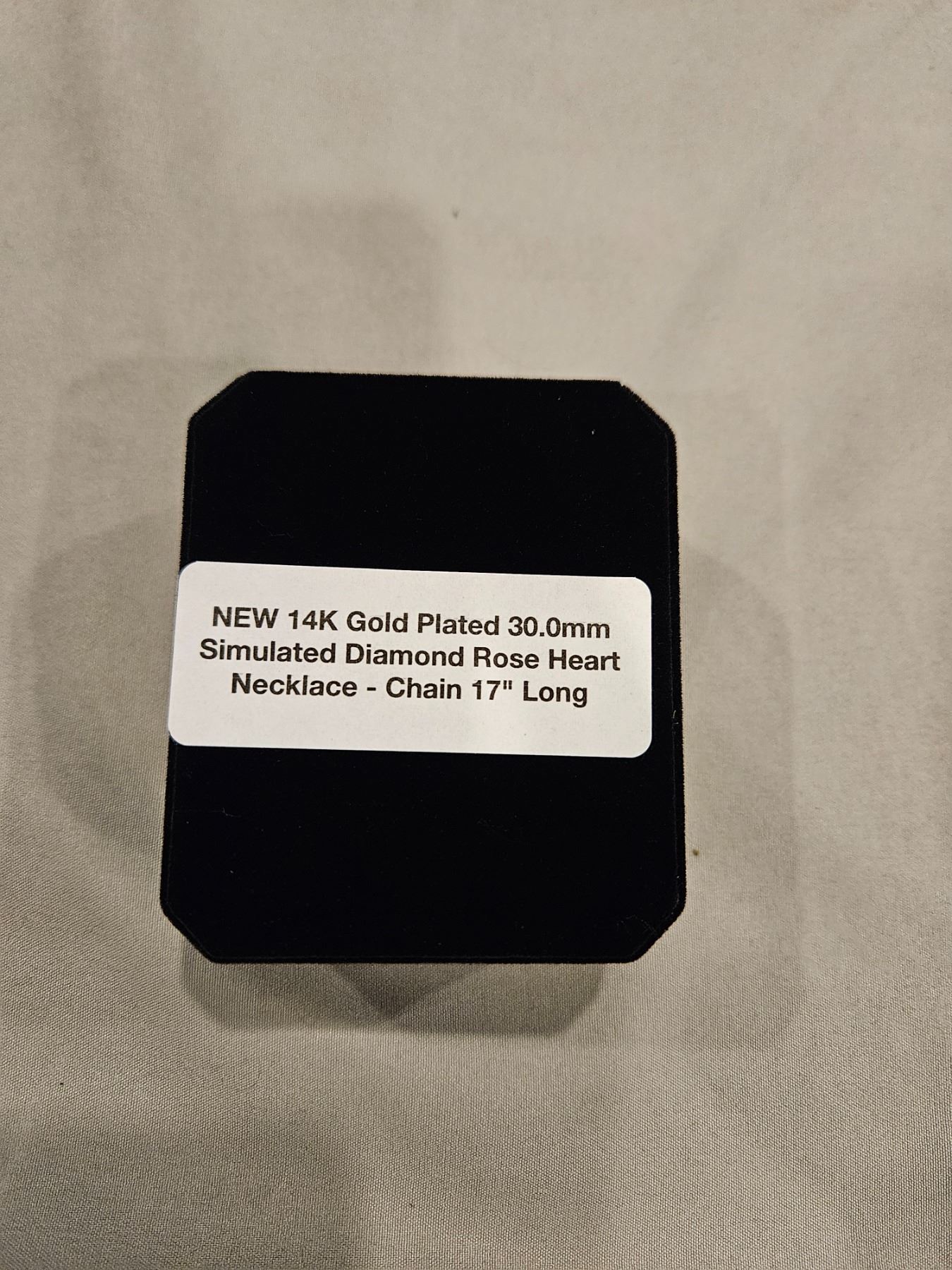 14K Gold Plated 30.00mm Simulated Diamond Rose Heart Necklace- 17' Chain