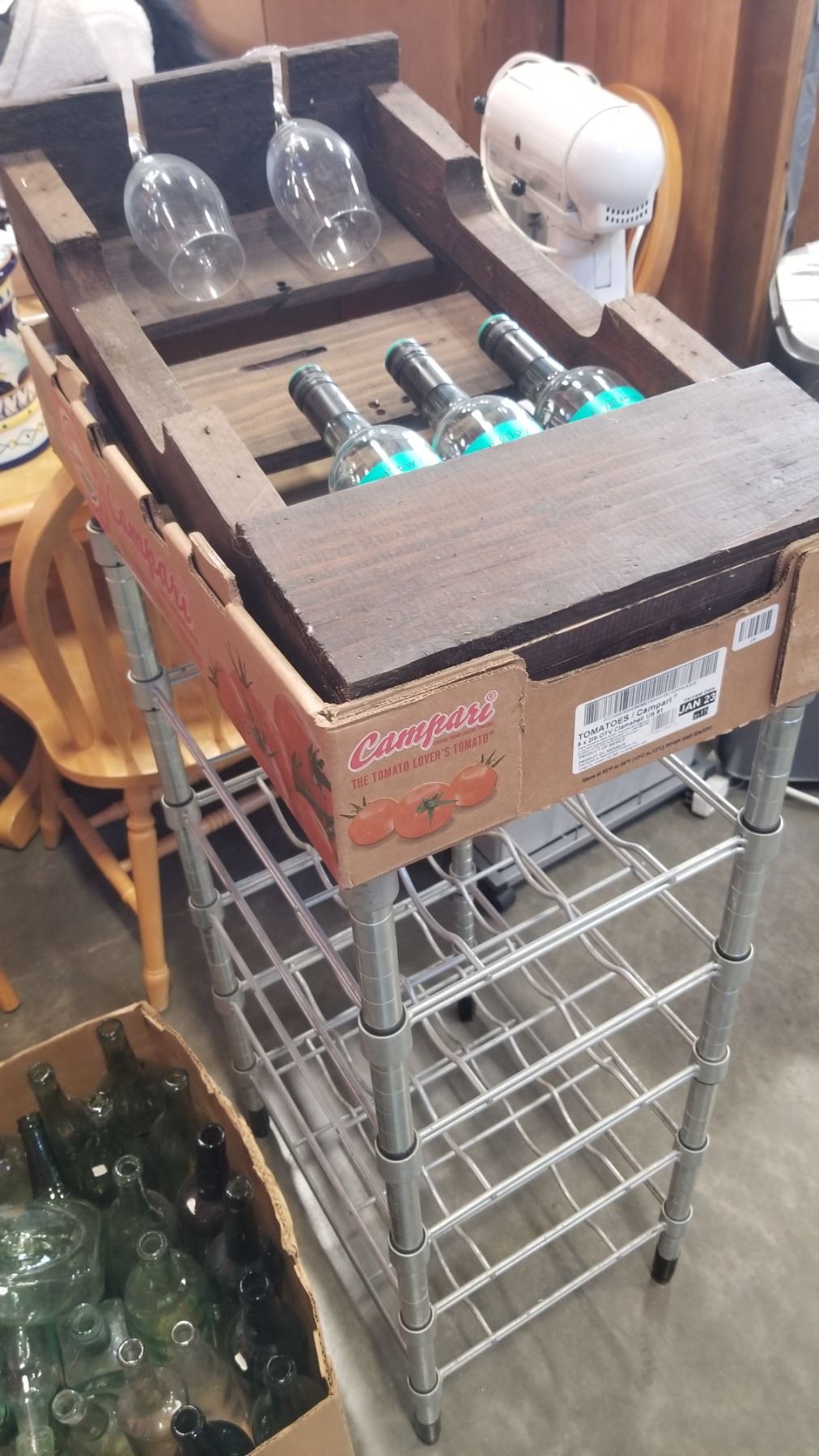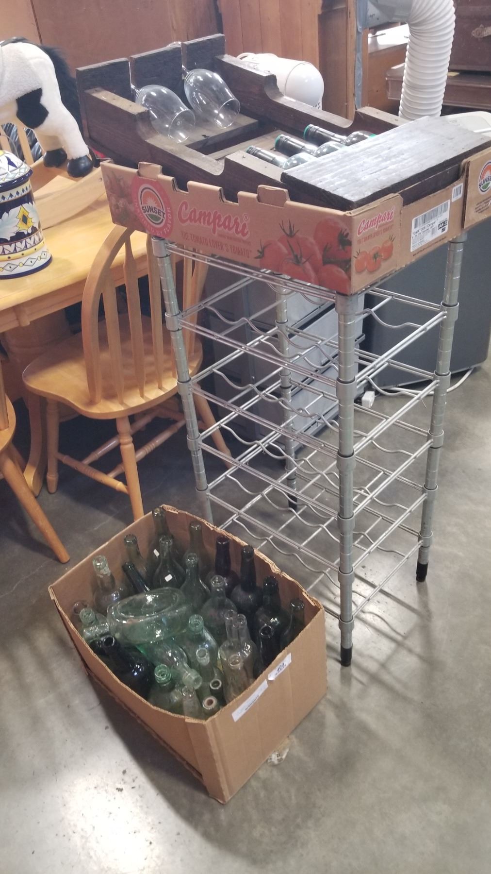 30 vintage and anitque bottles and metal wine rack