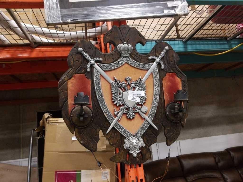 32 INCH COAT OF ARMS W/ CANDLE HOLDERS