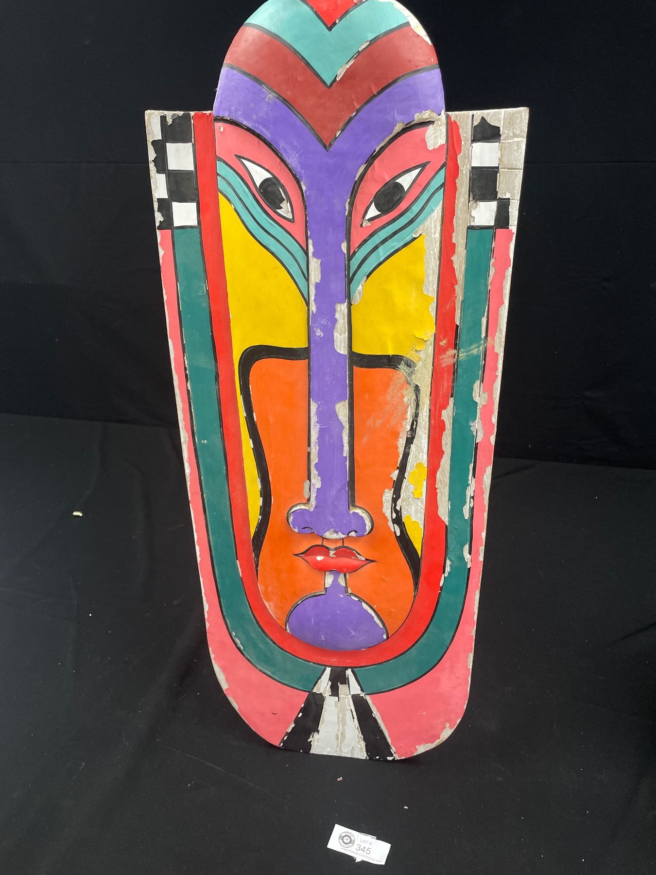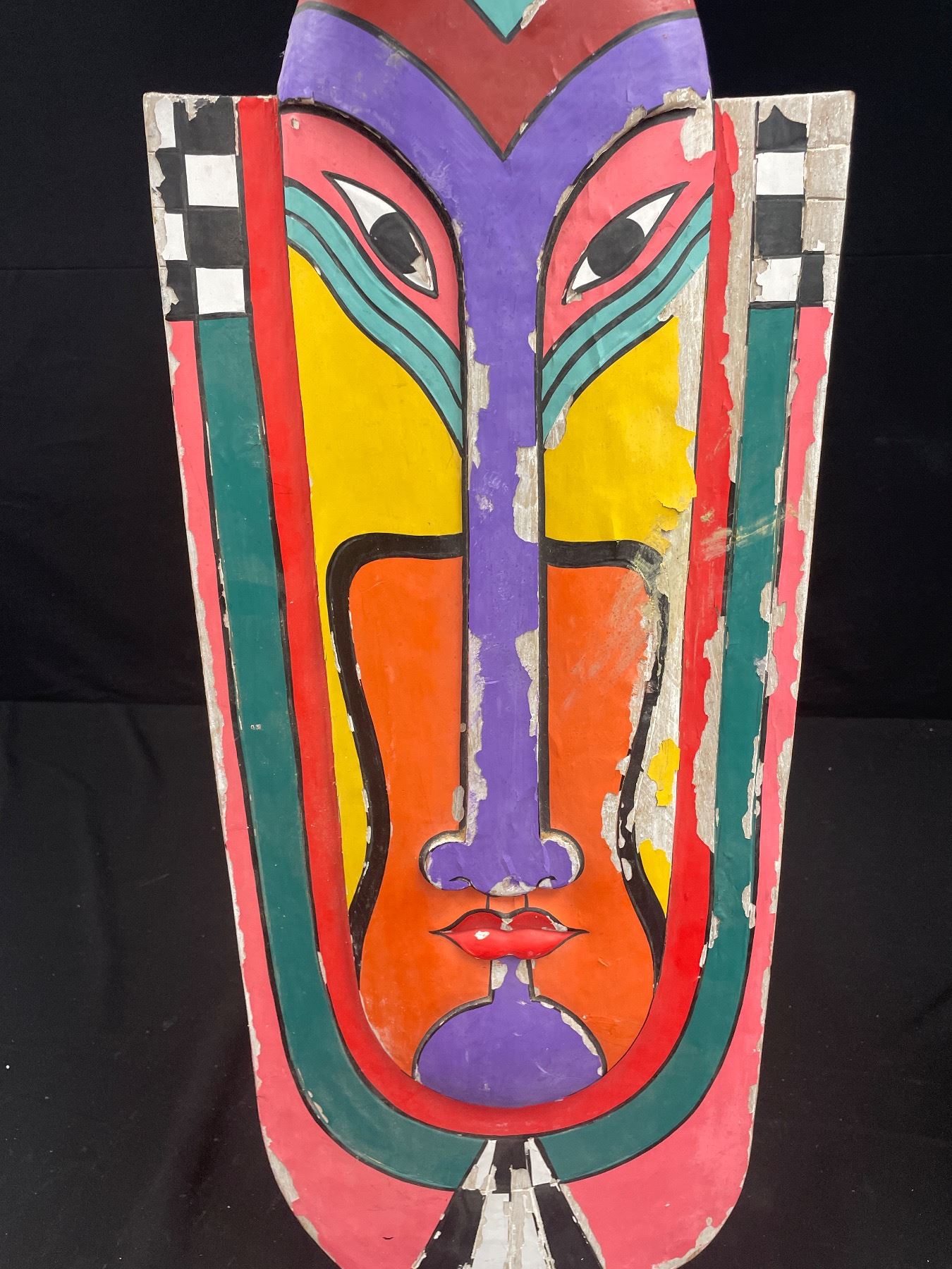 32" Tall Folk Art Face On Wood