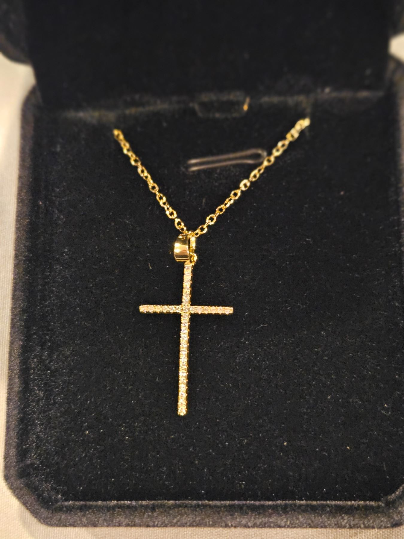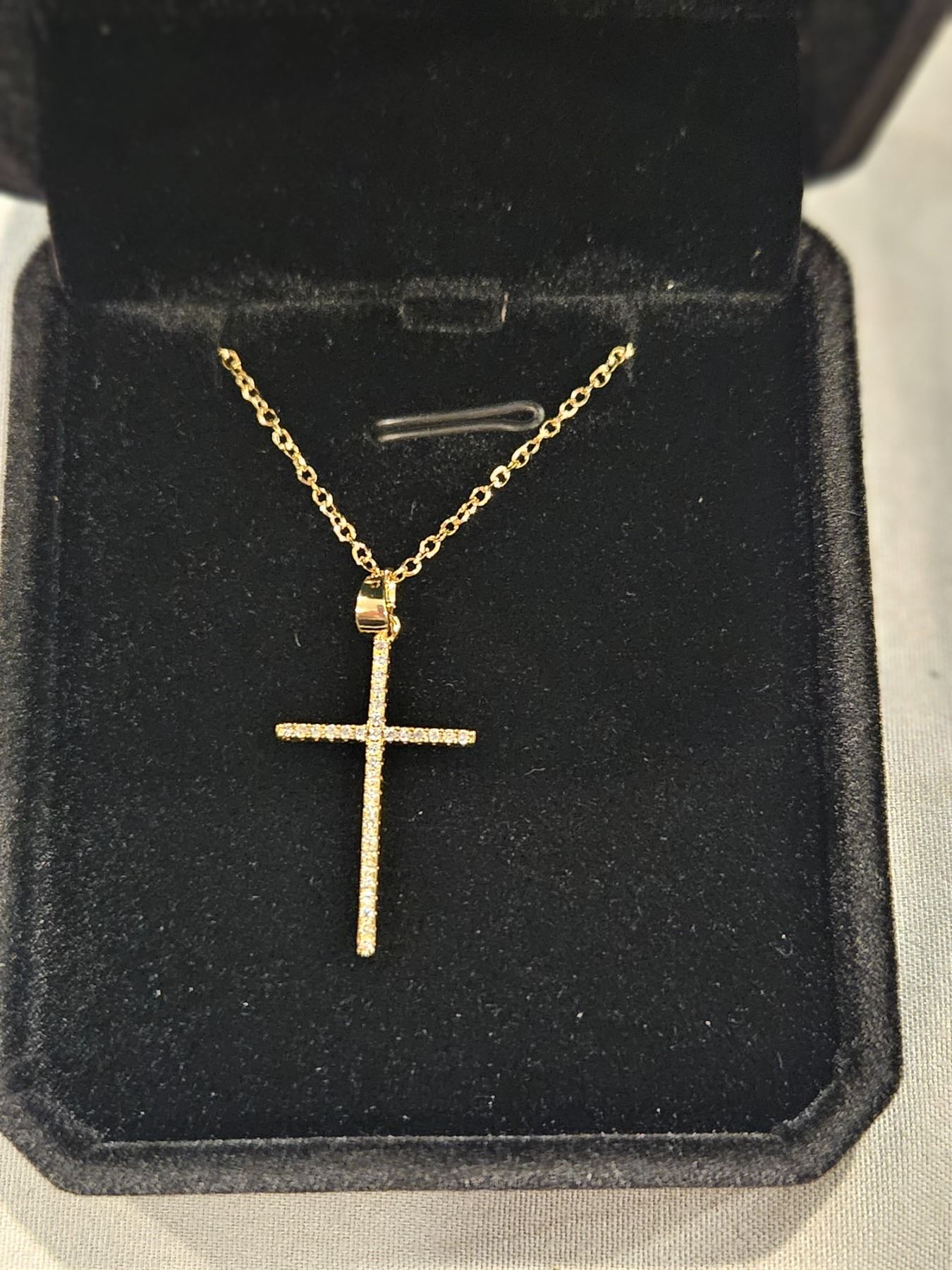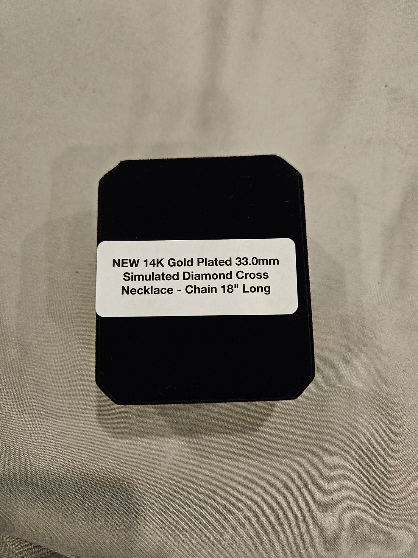 14K gold plated 33.00mm Simulated Diamond Cross Necklace- 18" long chain