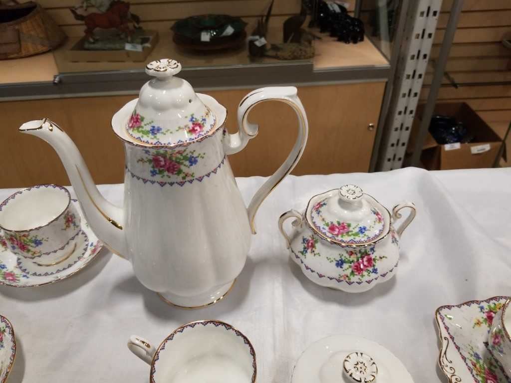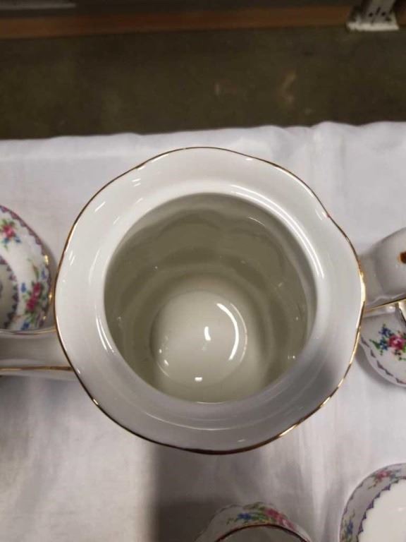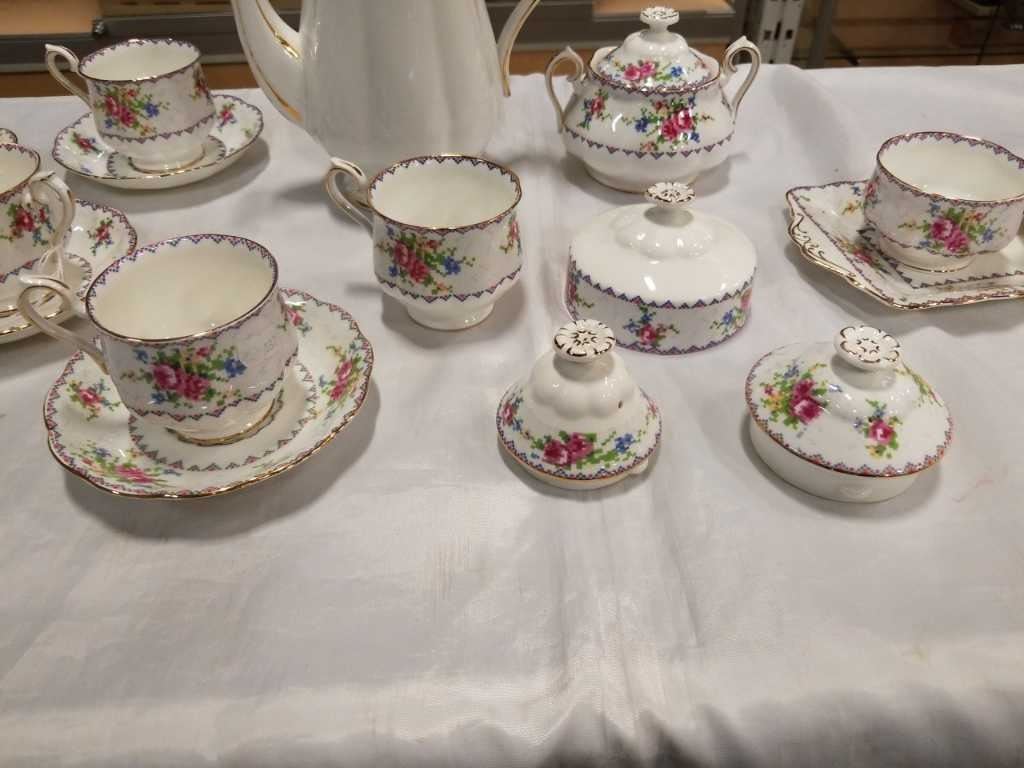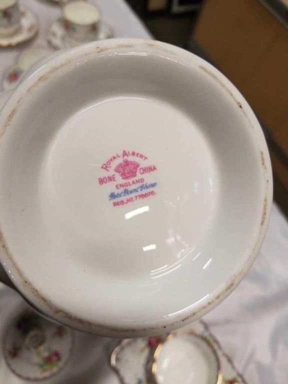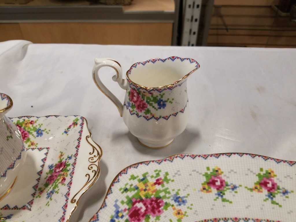 33 PIECES OF ROYAL ALBERT PETIT POINT CHINA : COFFEE POT, TEACUPS AND SAUCERS ETC