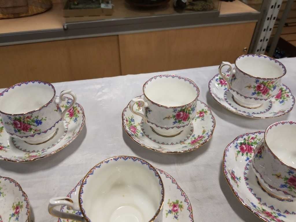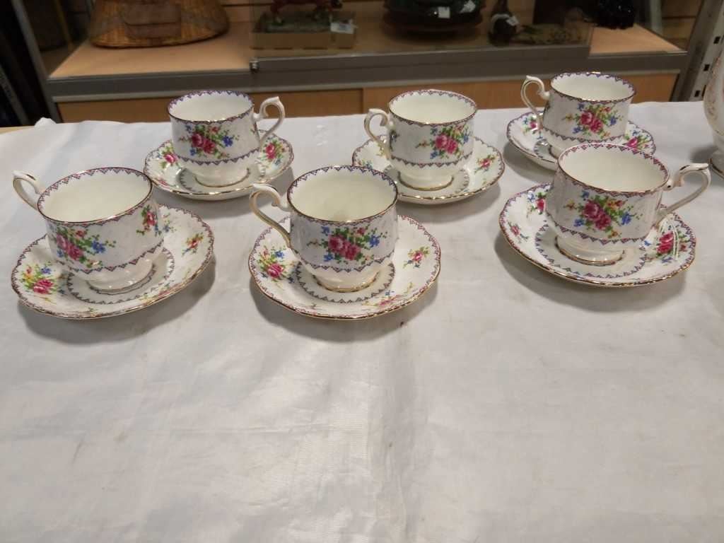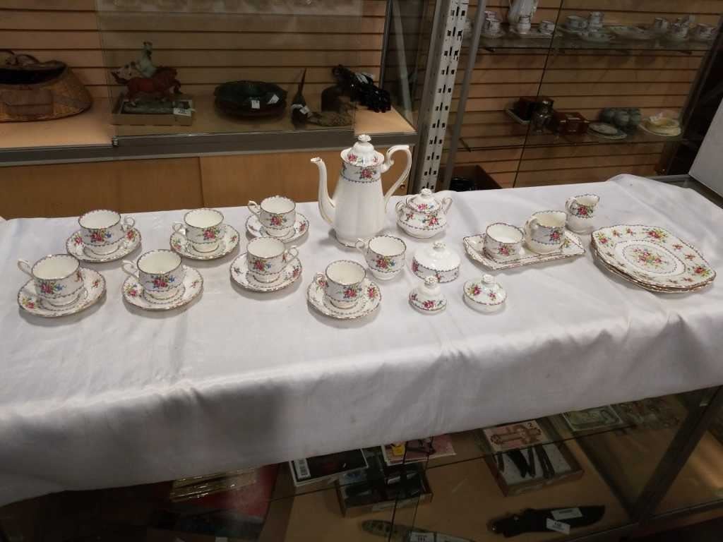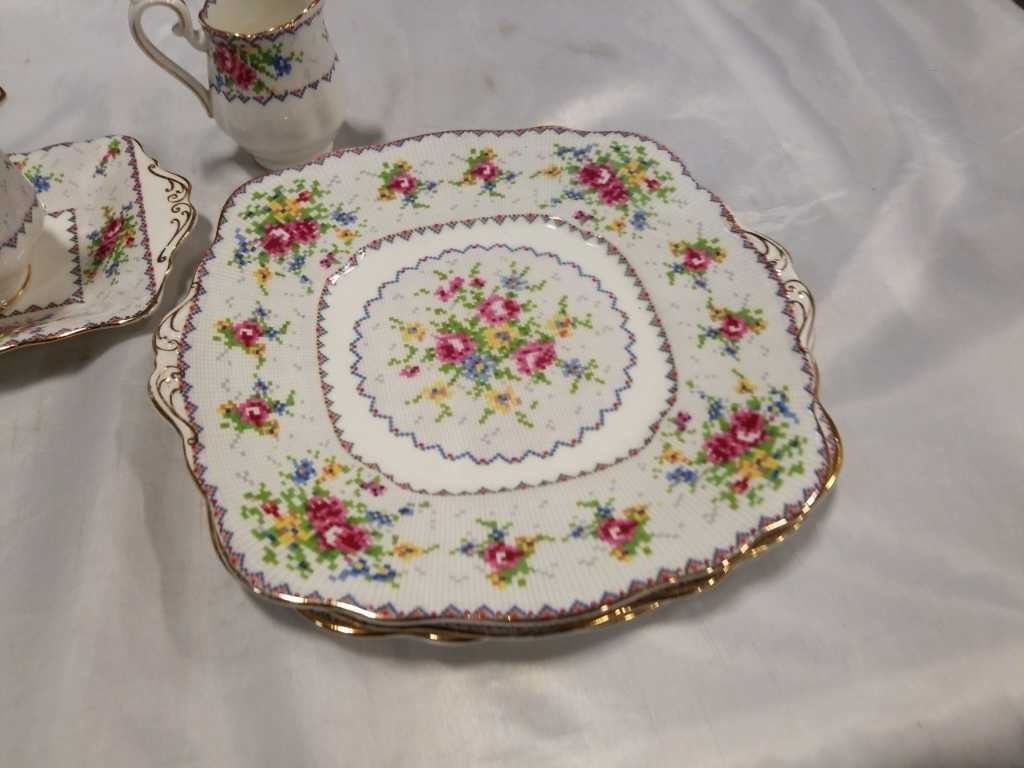 33 PIECES OF ROYAL ALBERT PETIT POINT CHINA : COFFEE POT, TEACUPS AND SAUCERS ETC