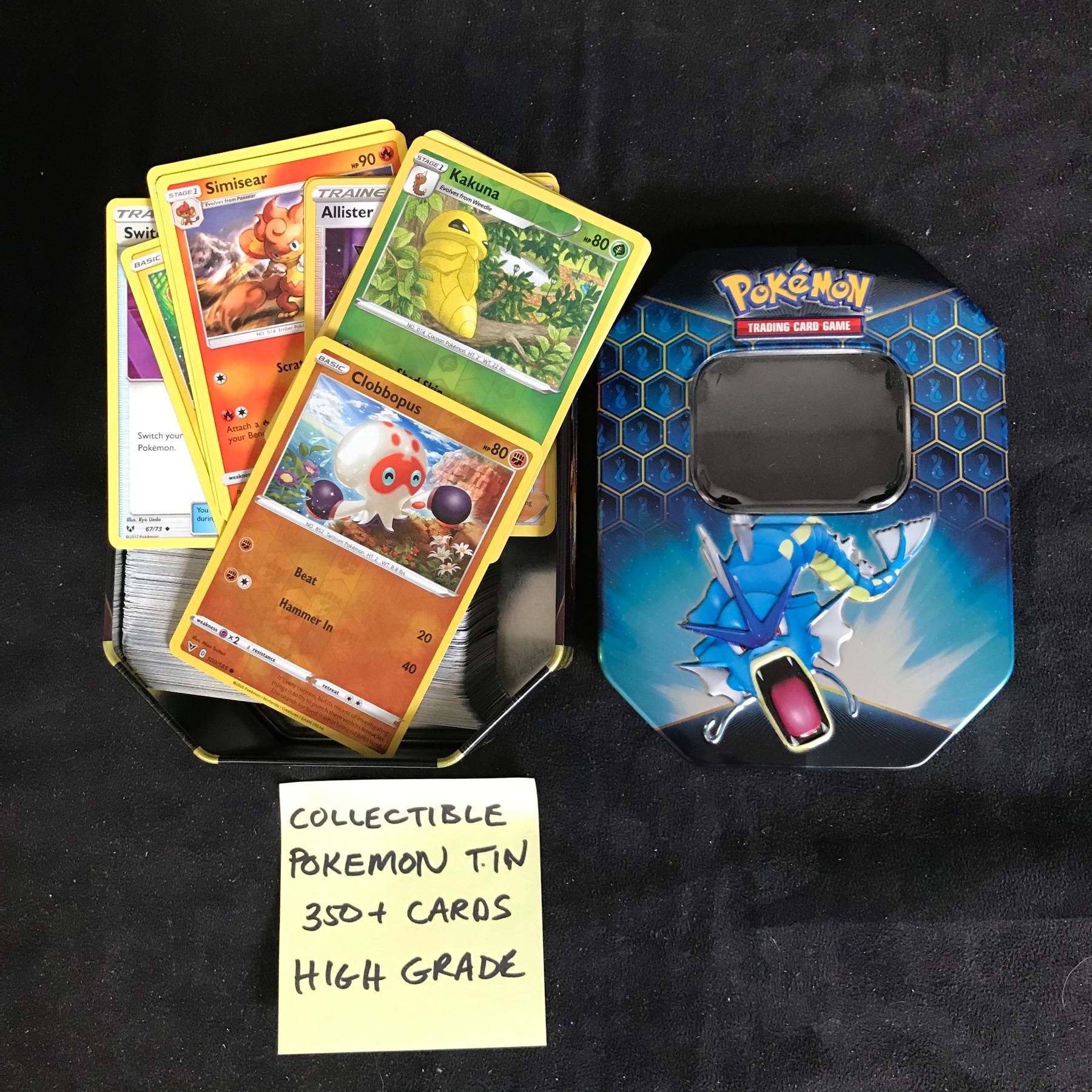 350+ POKEMON TRADING CARDS WITH COLLECTIBLE TIN