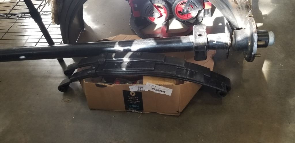 3500LB TRAILER AXLE WITH SPRINGS AND ACCESSORIES, NEVER INSTALLED 4.5 BOLT PATTERN