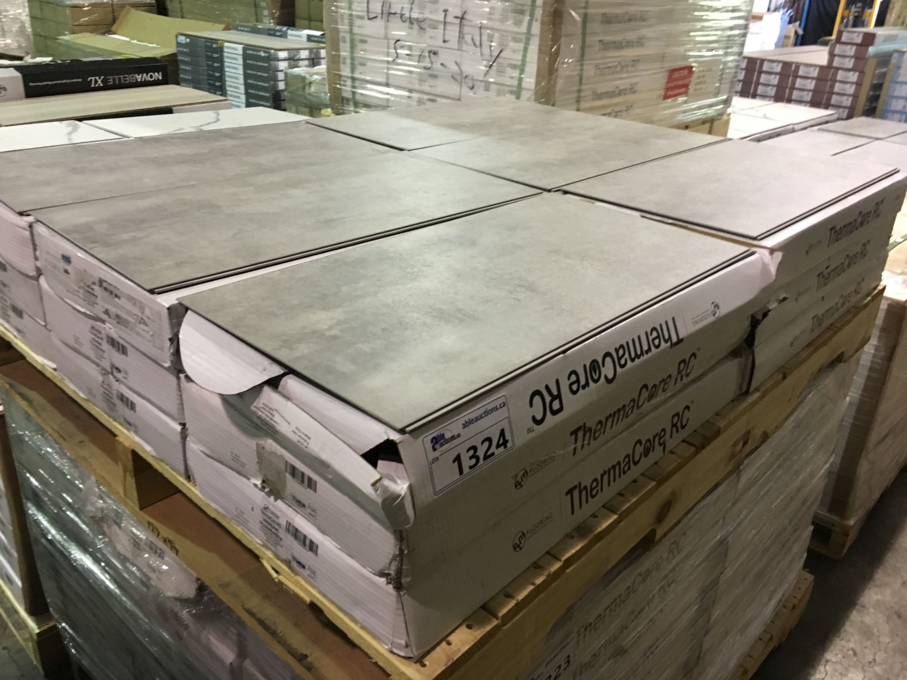 360.9 SQ FT OF EMT THERMACORE RC HIGH-LINE GREY STONE LOOK 6.5MM GLUE LESS VINYL FLOORING 20.05 SQ FT PER BOX 18 BOXES 360.9 SQ FT TOTAL HAS BUILT IN UNDERLAY WITH CLICK SYSTEM, *MUST TAKE ALL ON PALLET*