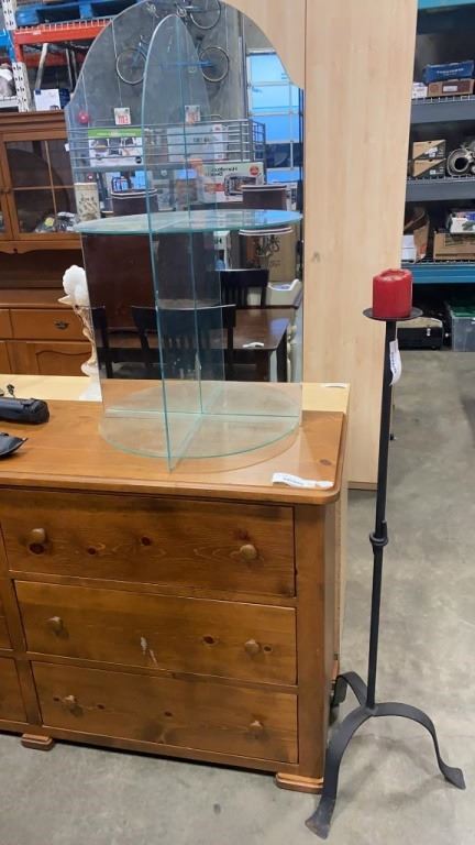 37" MIRRORED KNICK KNACK SHELF WITH GLASS SHELVES AND METAL 4FT CANDLE STAND