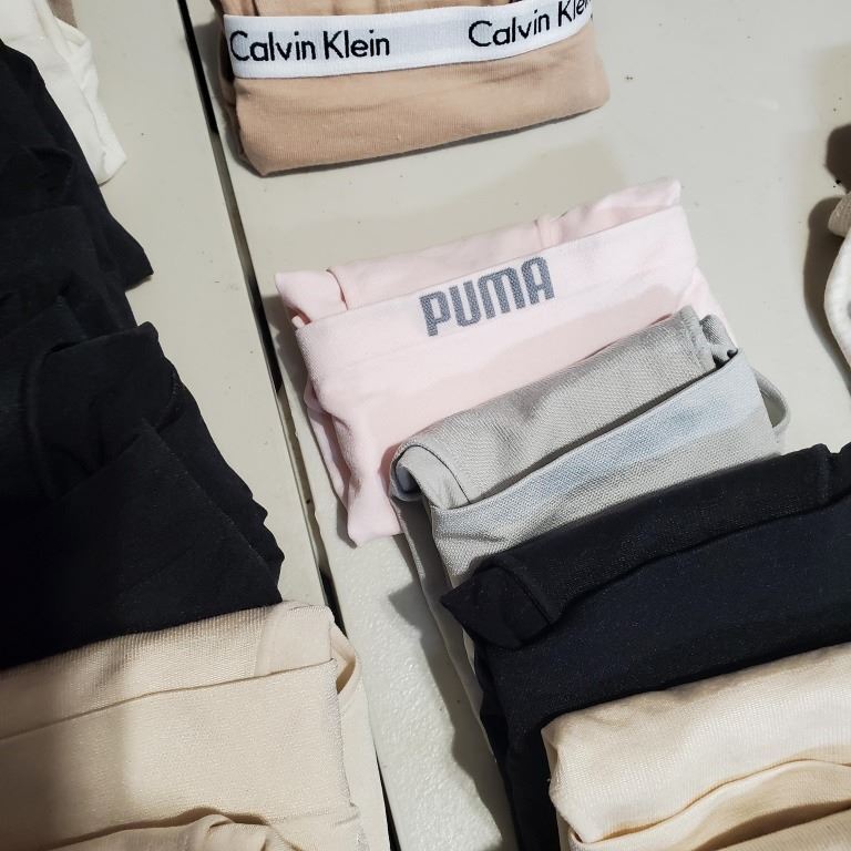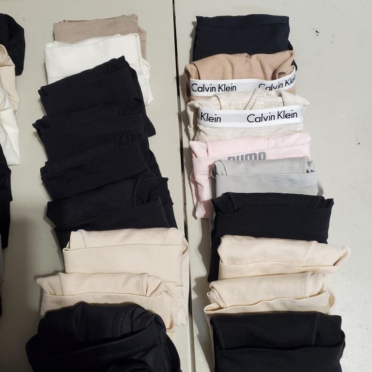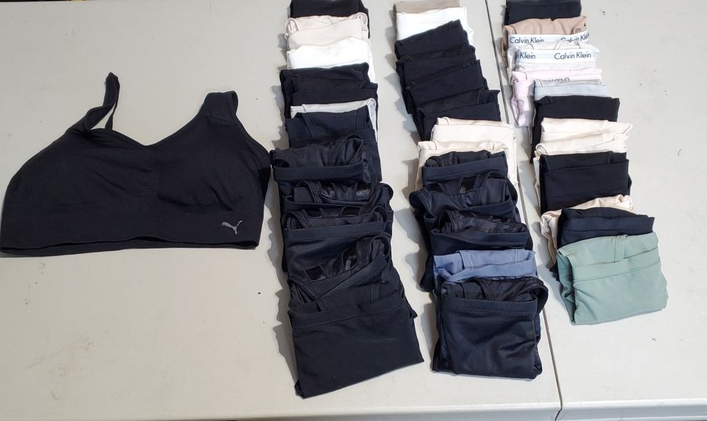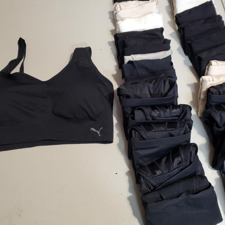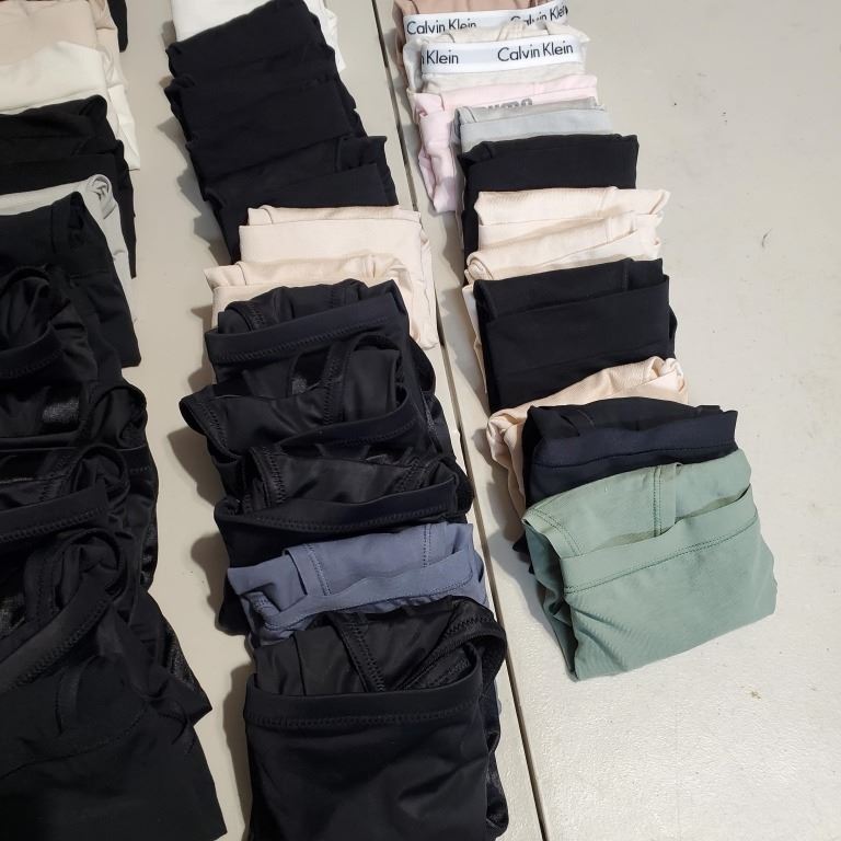 37 PAIRS OF AS NEW WOMEN'S UNDERWEAR SIZE LARGE - XXL INCLUDING MAIDENWARE MAIDENWARE, PUMA CALVIN KLINE AND JONES WITH ONE PUMA SPORTS BRA SIZE XL
