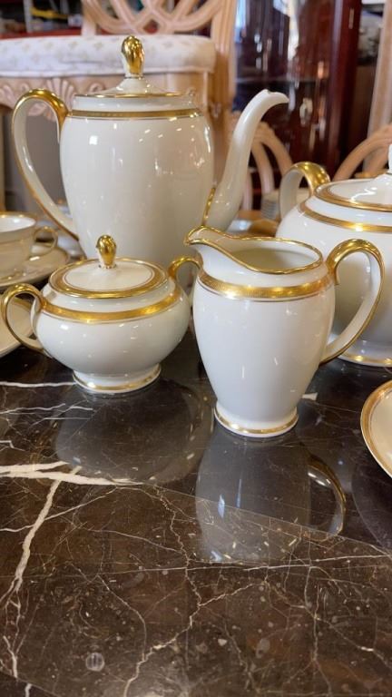 39 PIECE TEA SERVICE ROSENTHAL SELB GERMAN AIDA CHINA - 17 TEACUPS, 18 SAUCERS, TEA POT W/ LID, COFFEE POT W/ LID, CREAM AND SUGAR
