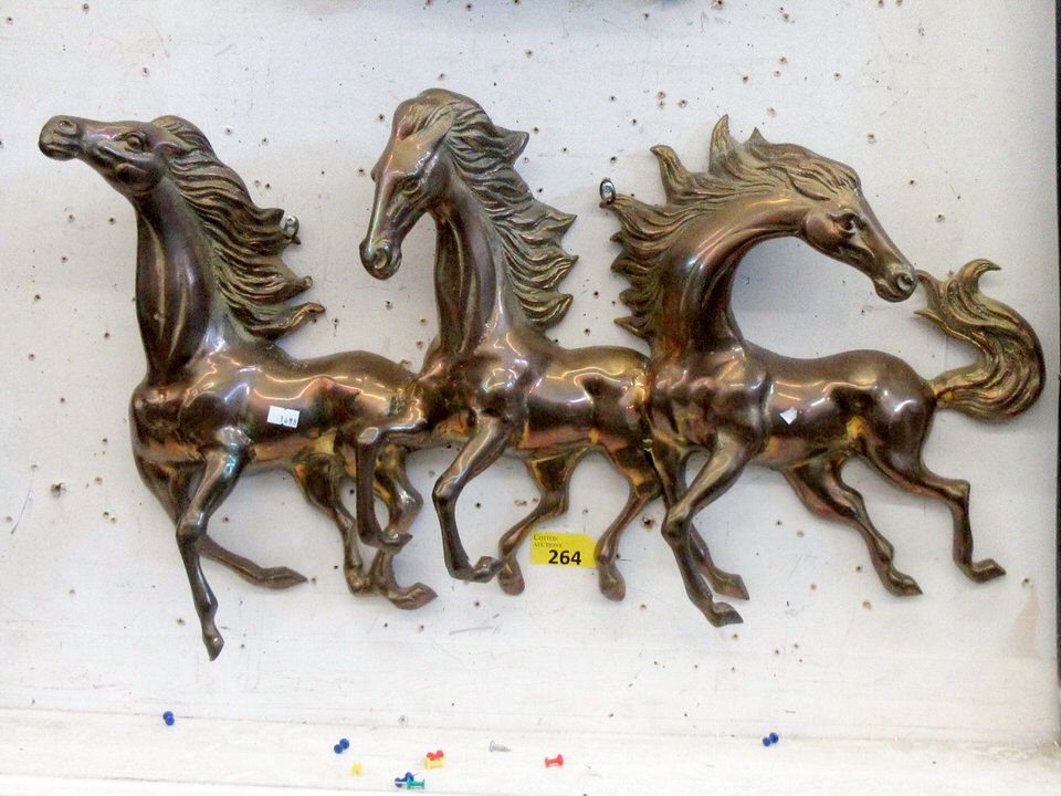 3D Brass Horses Wall Art - 5  x 26  x 16  tall