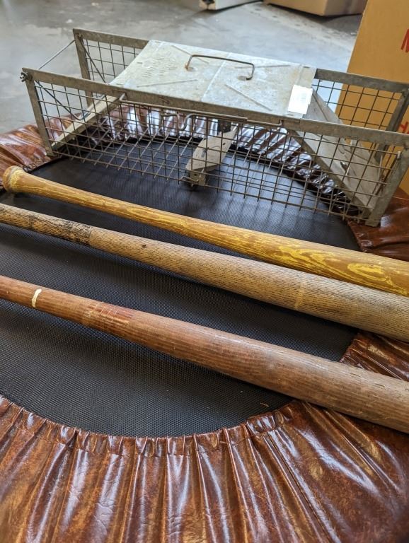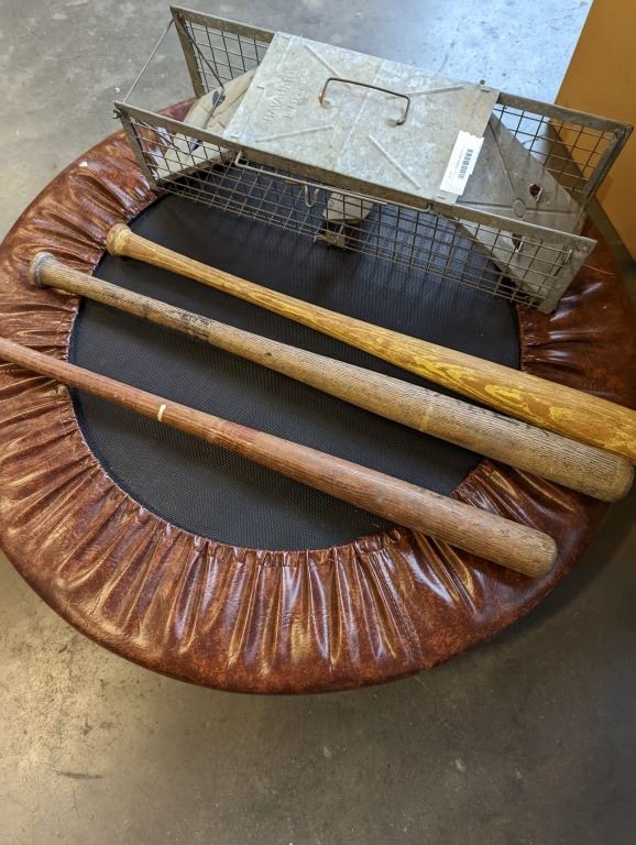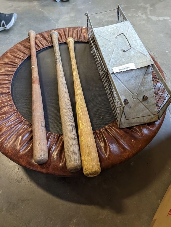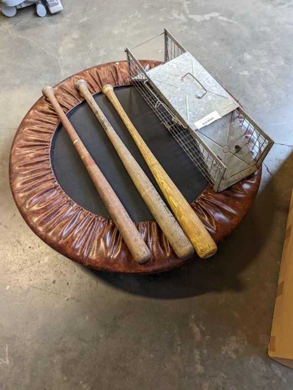 3FT EXCERSIZE TRAMPOLINE WITH LIVE TRAP AND 3 WOODEN BATS