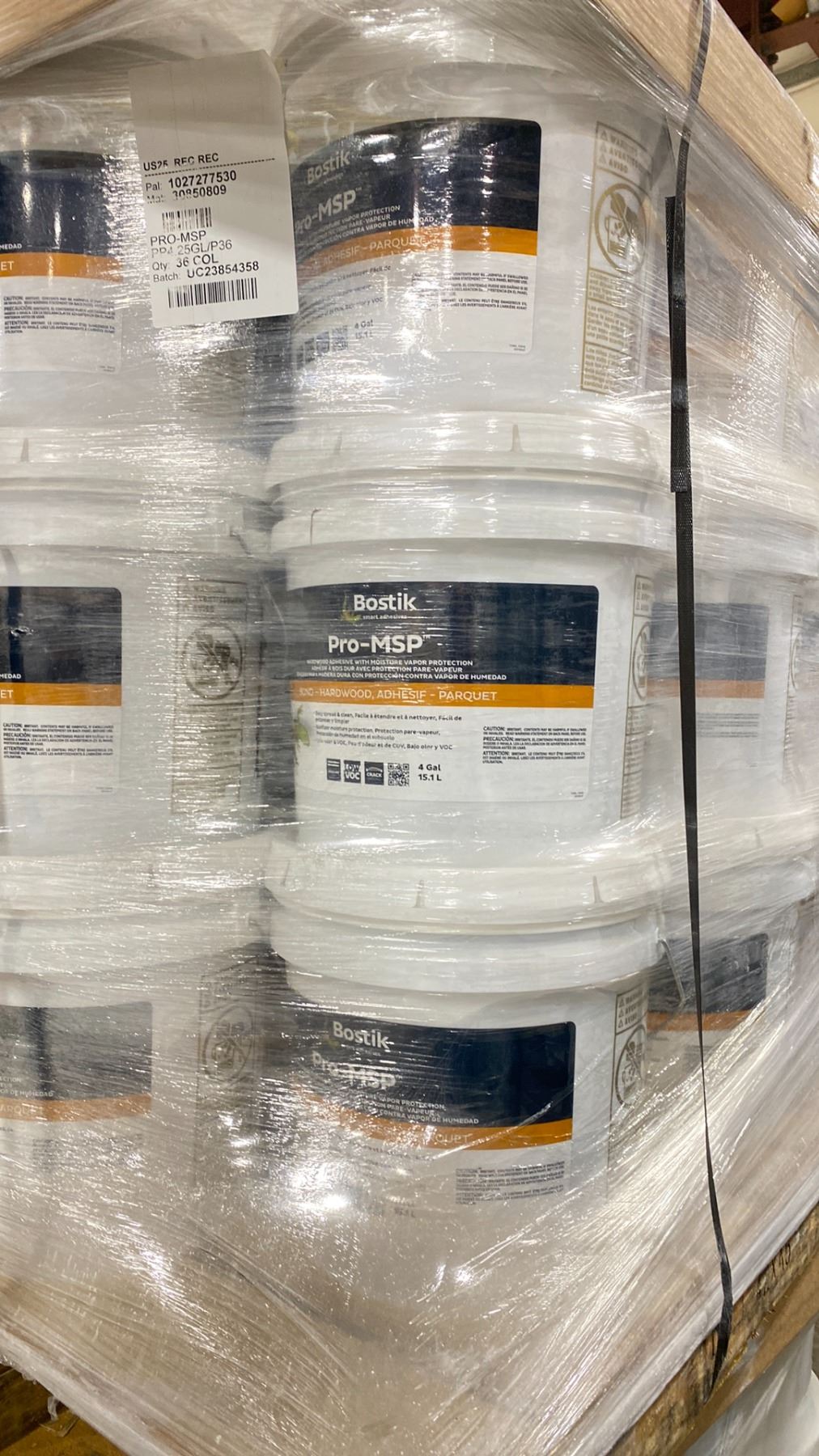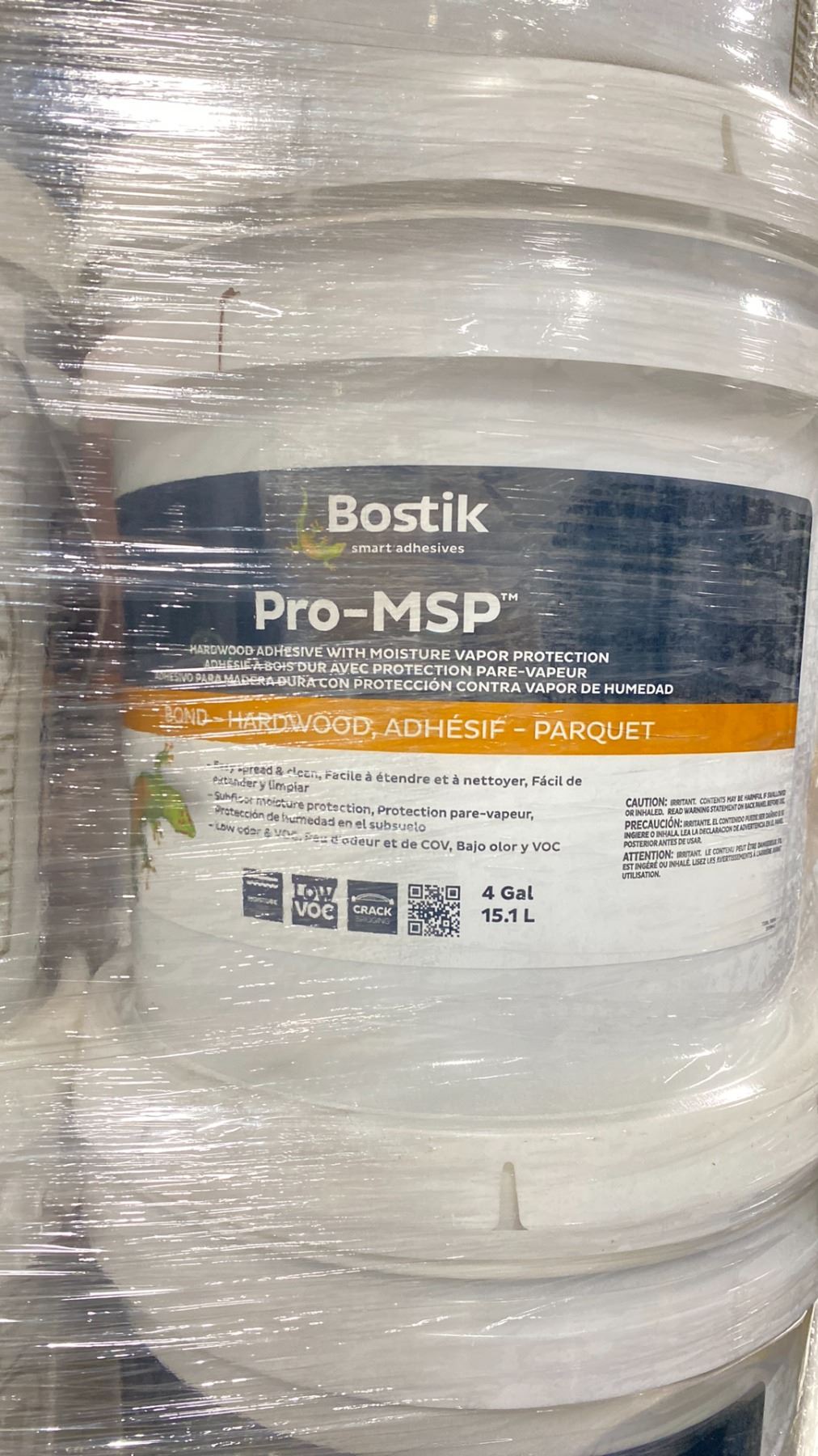 3X 4 GALLON PALES OF BOSTIK PRO-MSP COMMERCIAL HARDWOOD ADHESIVE