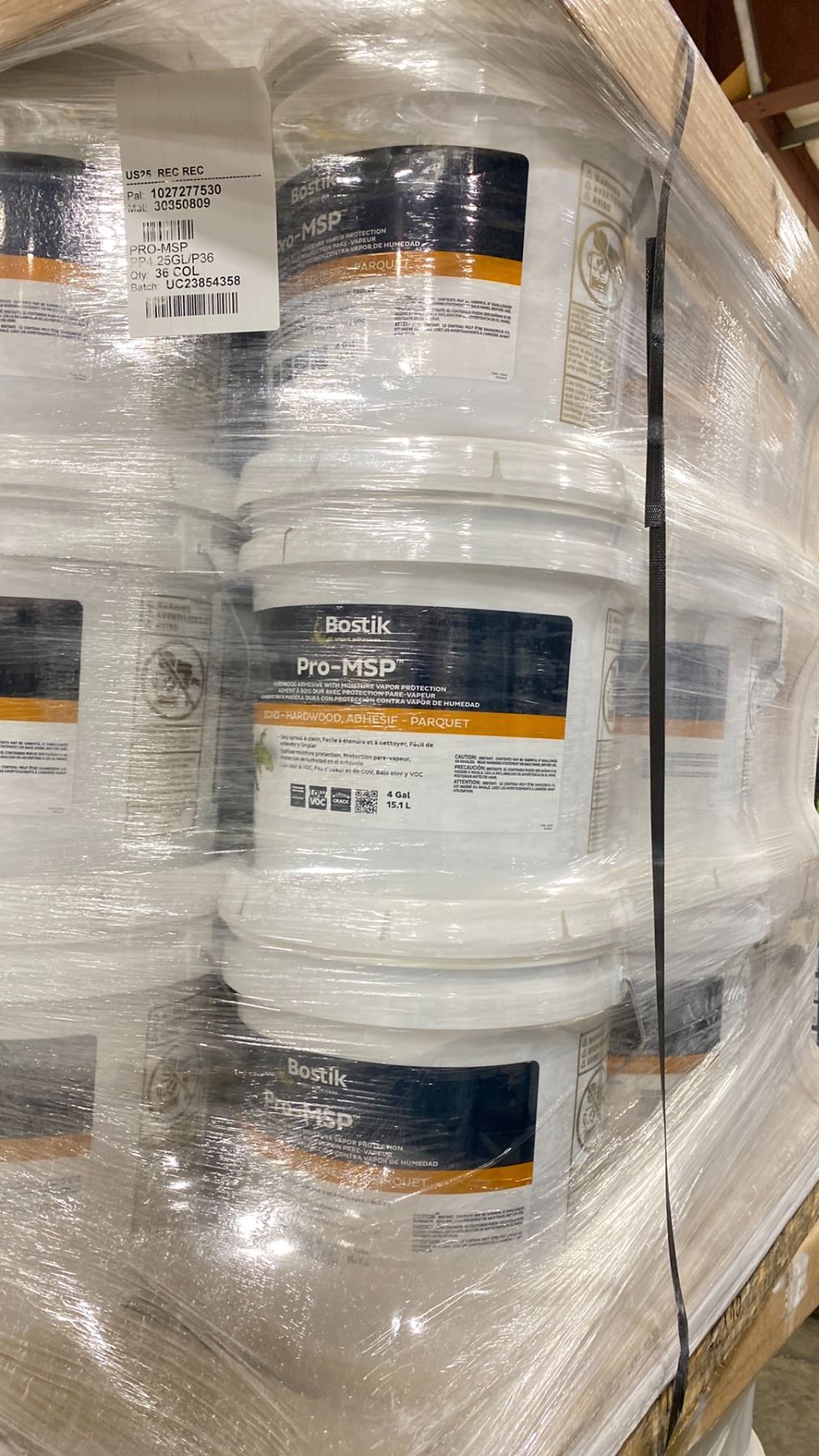 3X 4 GALLON PALES OF BOSTIK PRO-MSP COMMERCIAL HARDWOOD ADHESIVE