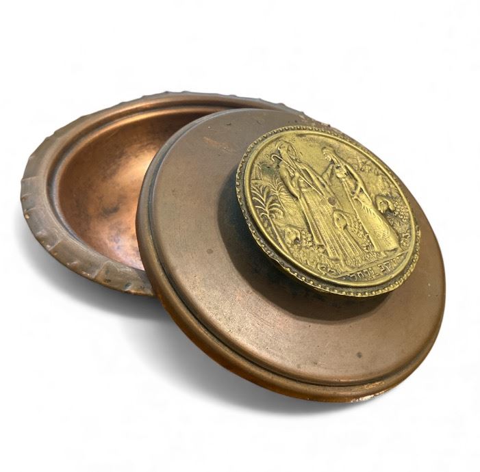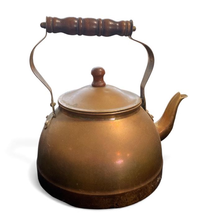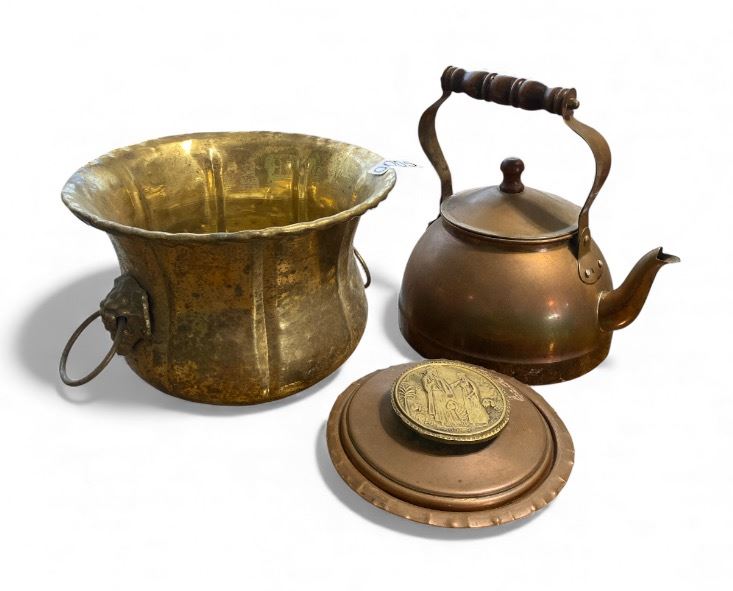 3pc vintage decorative decor - kettle, solid brass lacquered bucket & ash tray