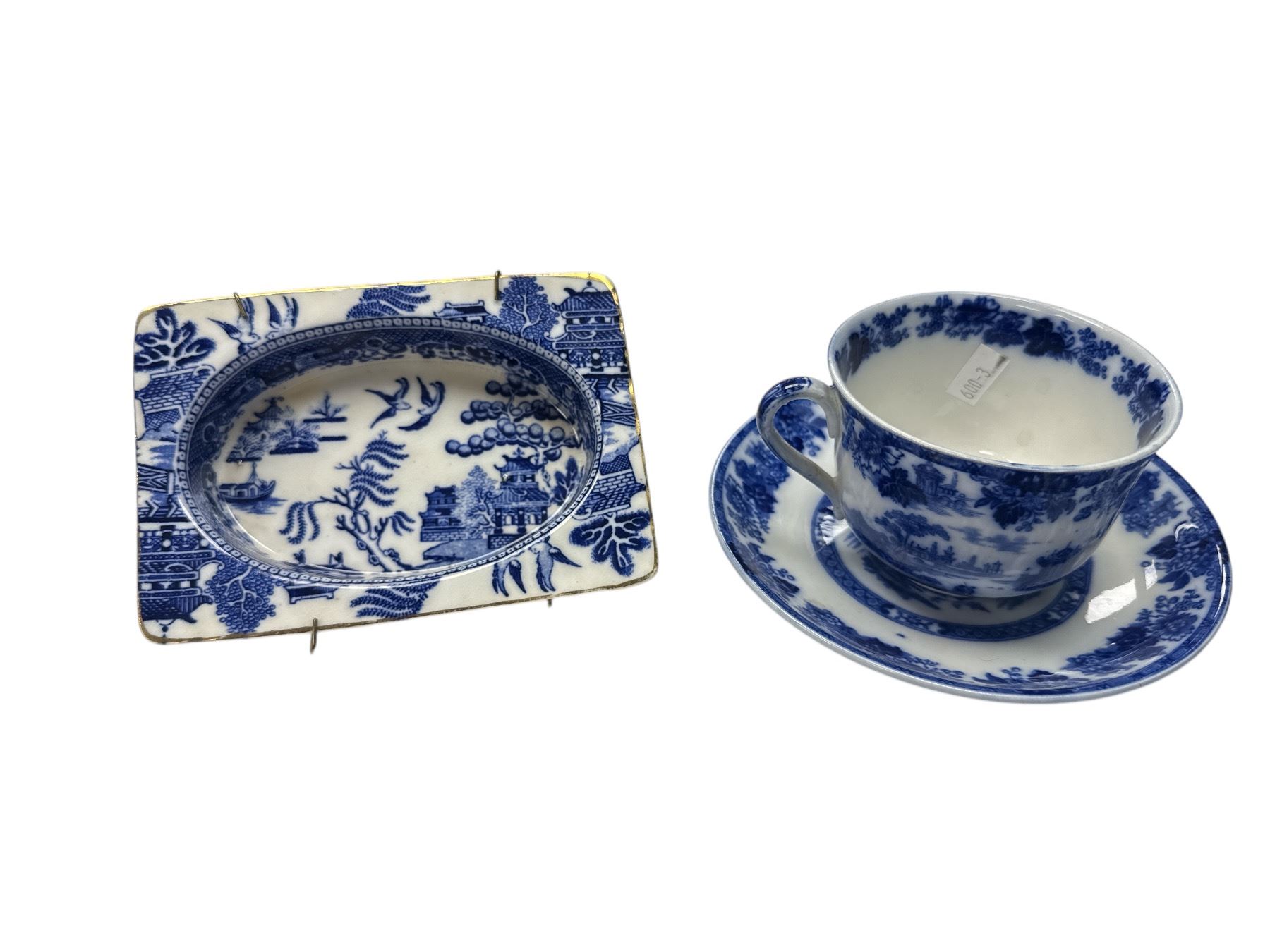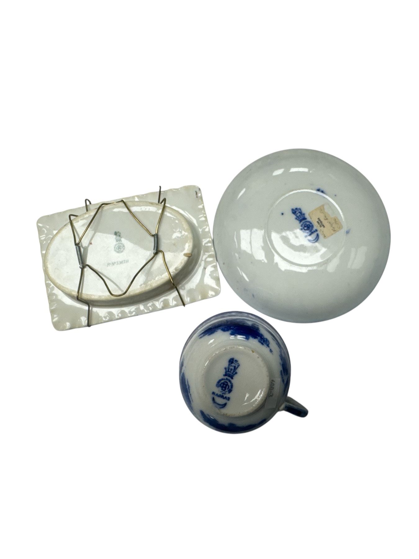 3pcs Of Blue/White Royal Doulton Porcelain Ware: Pin Dish & Teacup + Saucer