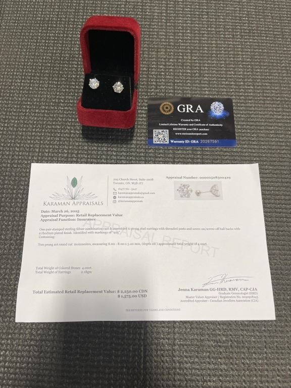 4.00 CT TW GRA CERTIFIED ROUND BRILLIANT CUT MOISSANITE STONES VVS D COLOR SET IN 6 CLAW FILAGREE BASKET HEAD SET IN 925 SILVER EARRINGS WITH SCREW BACKS RETAIL VALUE $2,250.00