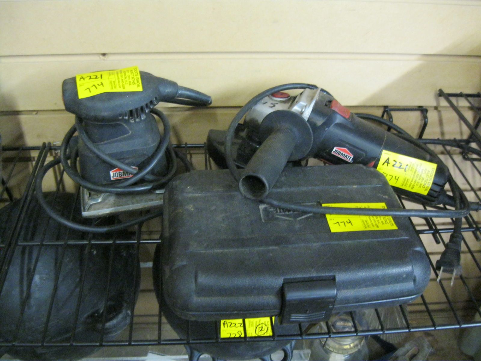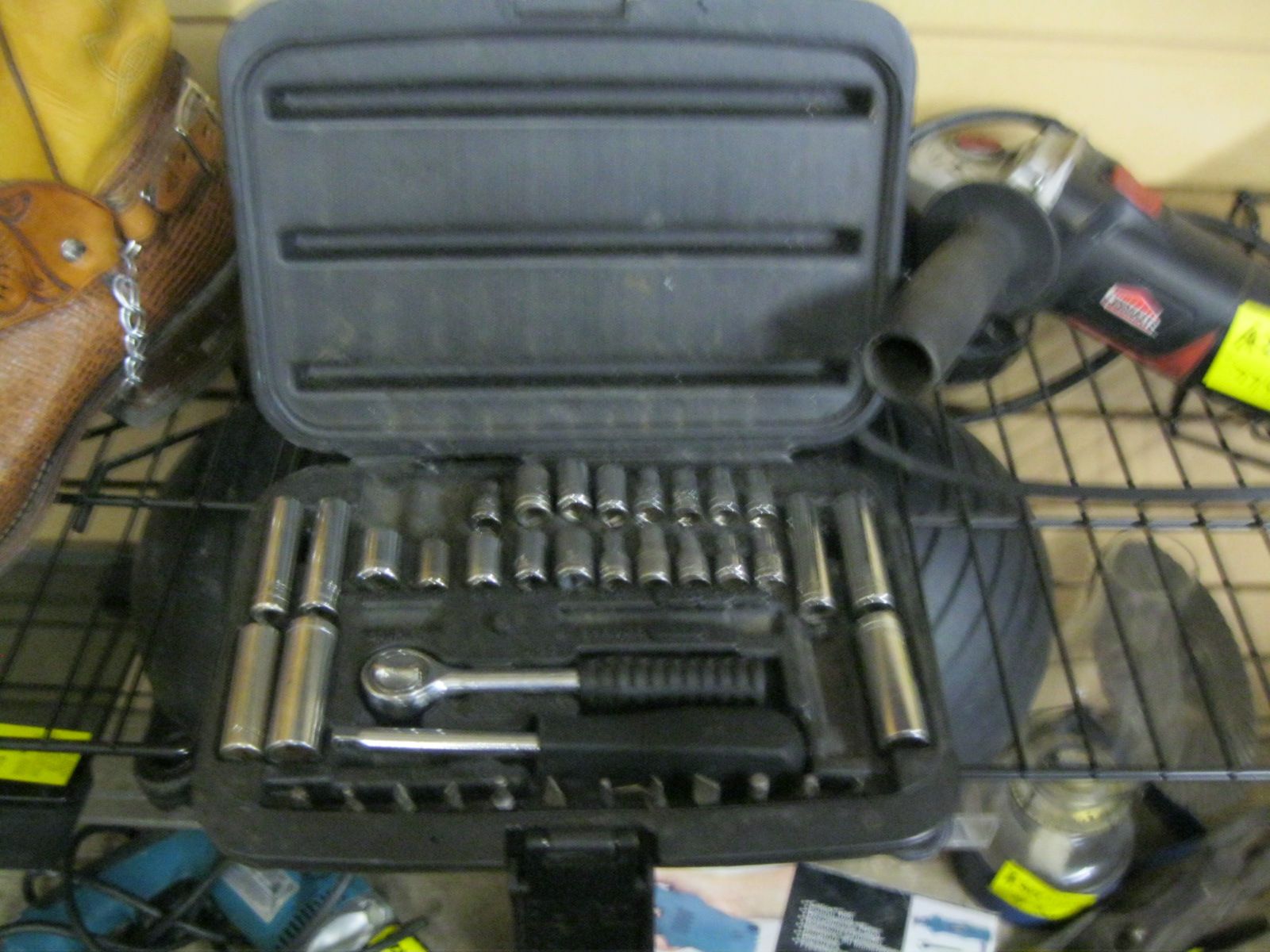 4 1/2" ANGLE GRINDER, SM. 1/4" SOCKET SET & A PALM SANDER