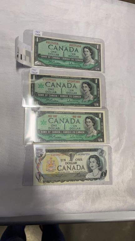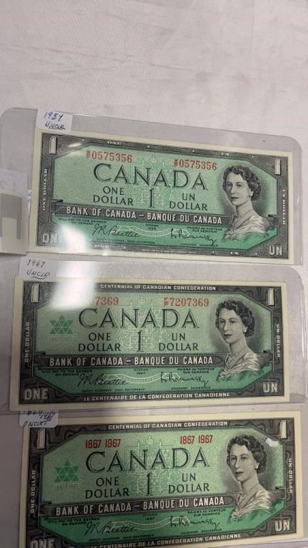 4- 1 DOLLAR BILLS UNCIRCULATED 1954-1967, 1967-1973