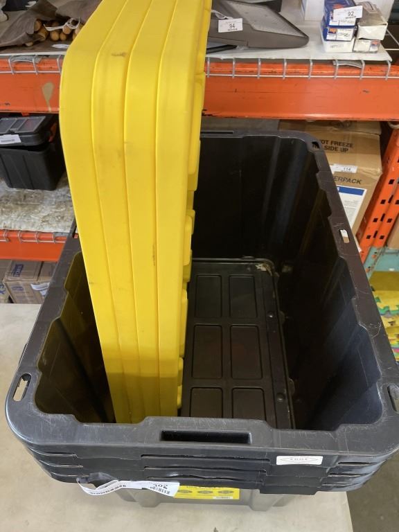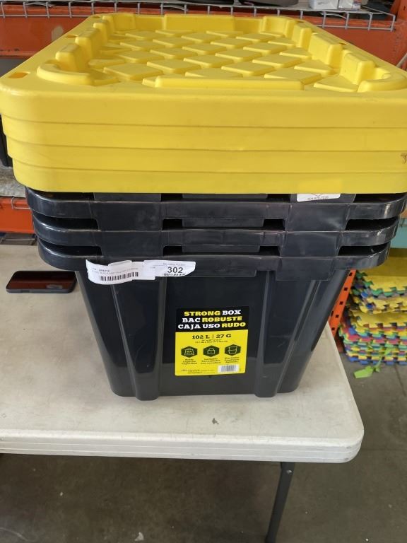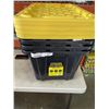 4 102L BLACK AND YELLOW STORAGE TOTES WITH LIDS