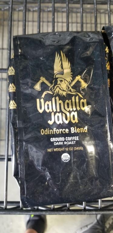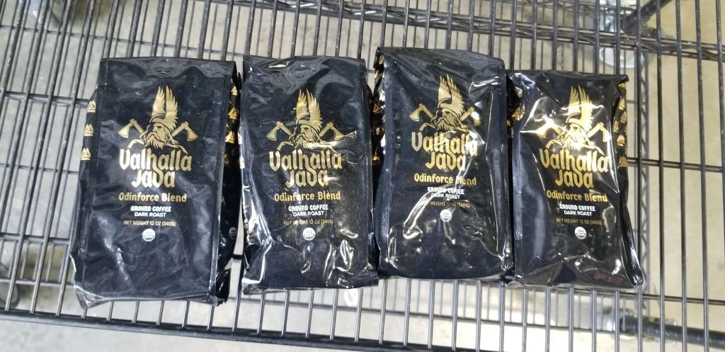 4 12 OZ VALHALLA JAVA ODINFORCE BLEND GROUND COFFEE DARK ROAST