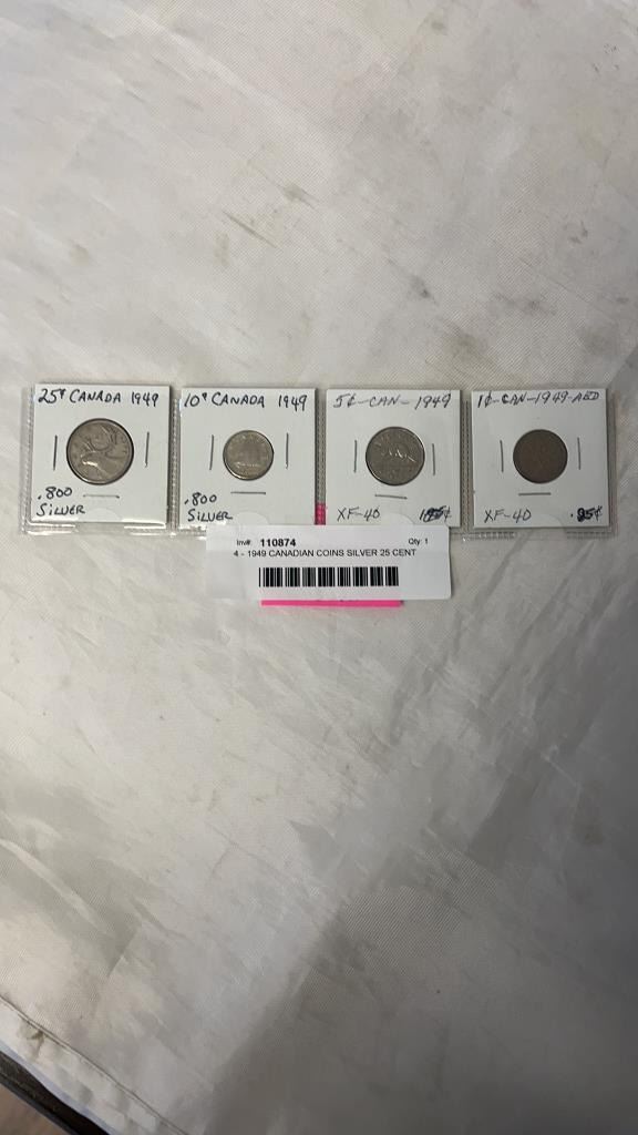 4 - 1949 CANADIAN COINS SILVER 25 CENT AND 10 CENT (.800) PLUS 5 CENT AND 1 CENT