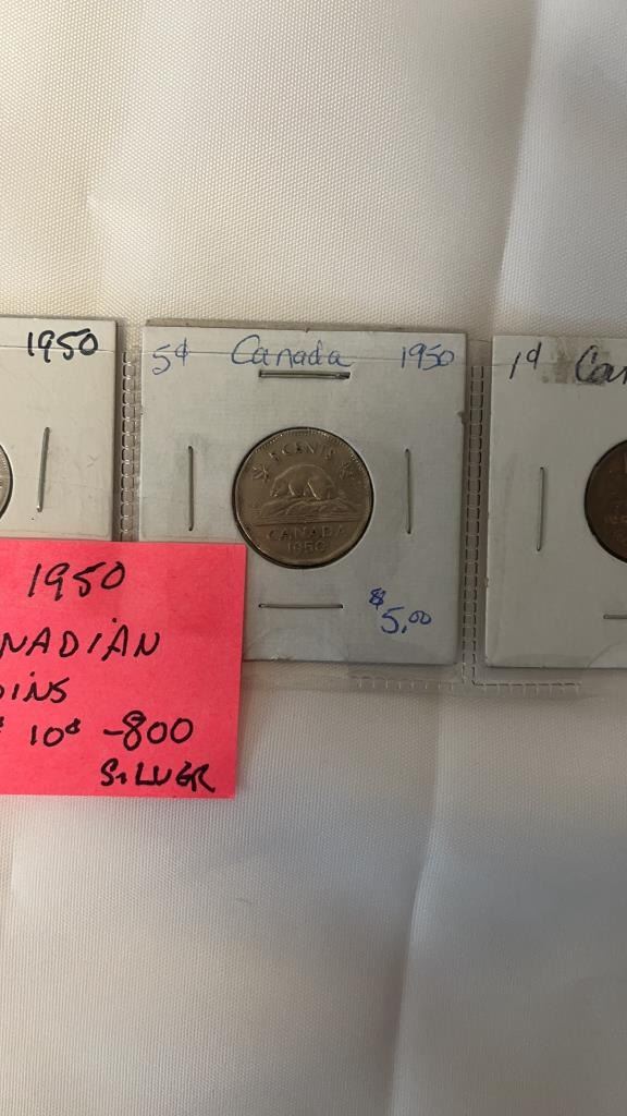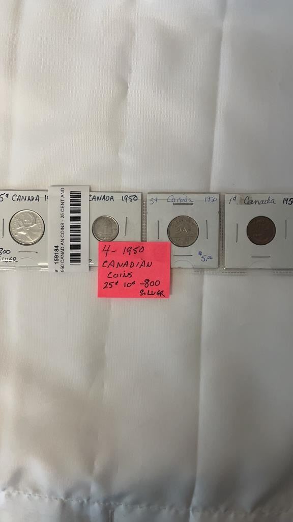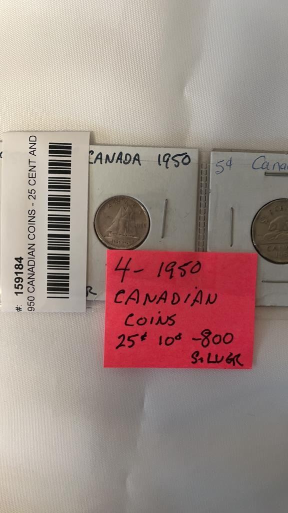 4 1950 CANADIAN COINS - 25 CENT AND 10 CENT .800 SILVER