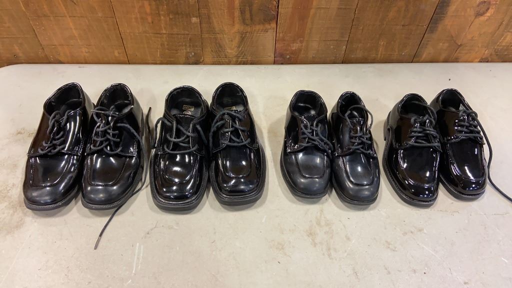 4 AS NEW PAIRS OF YOUTH FORMAL SHOES SIZES, 8,9,10,11