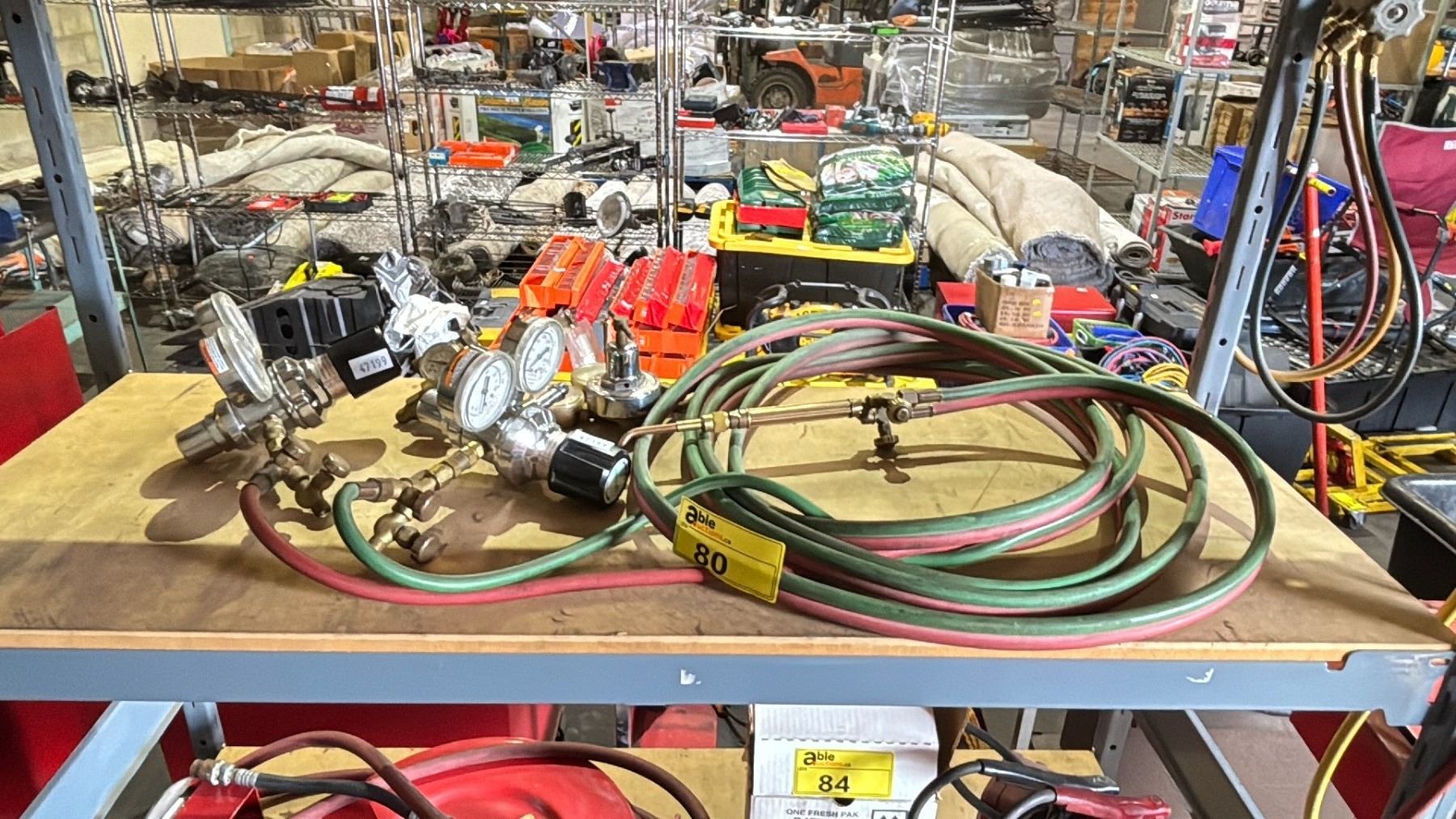 4 ASSORTED PSI GAUGES WITH ACETYLENE HOSE & TORCH