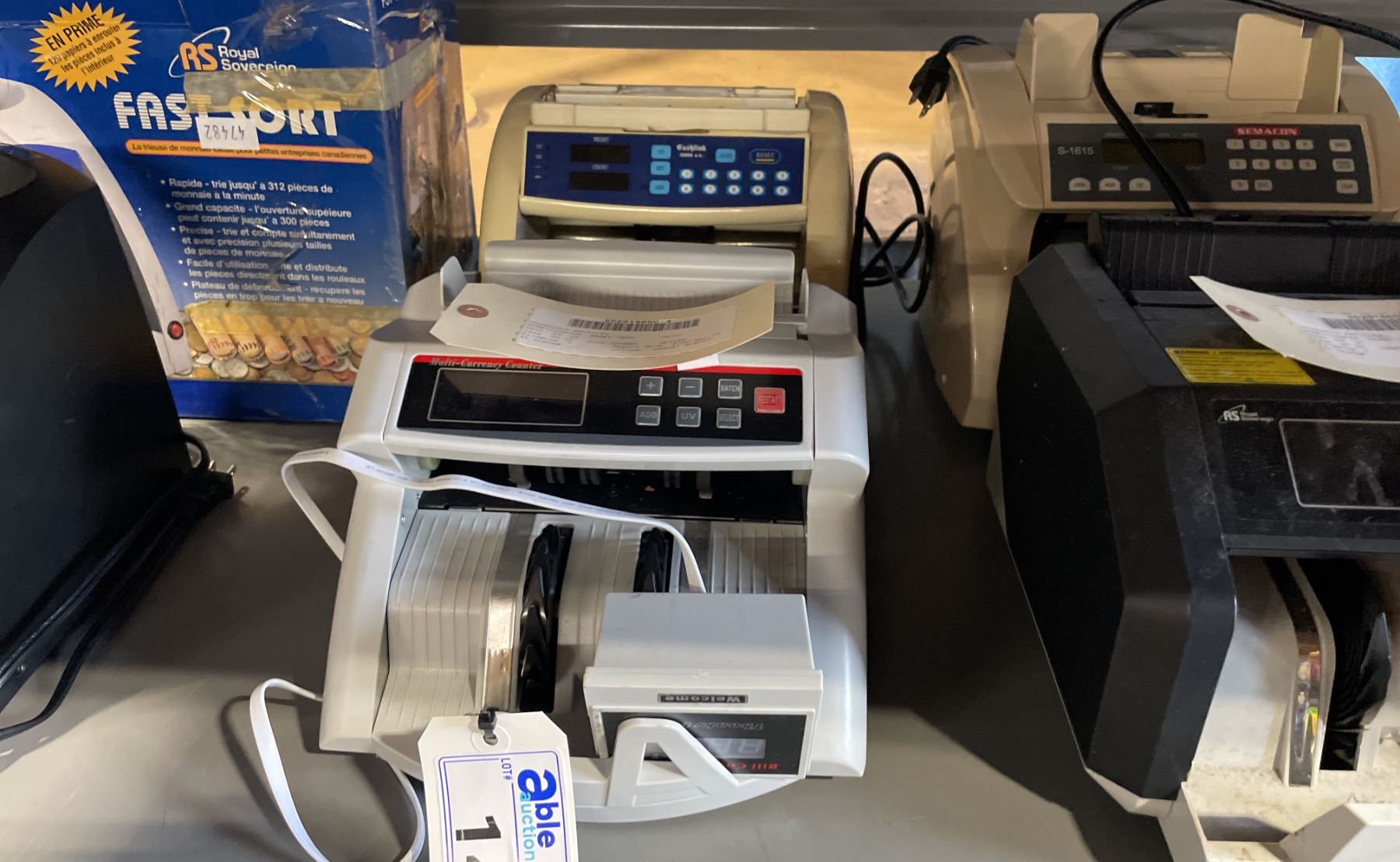 4 ASSORTED ROYAL SOVEREIGN ELECTRIC COUNTERTOP BILL COUNTERS & 2 ROYAL SOVEREIGN ELECTRIC COIN COUNTERS