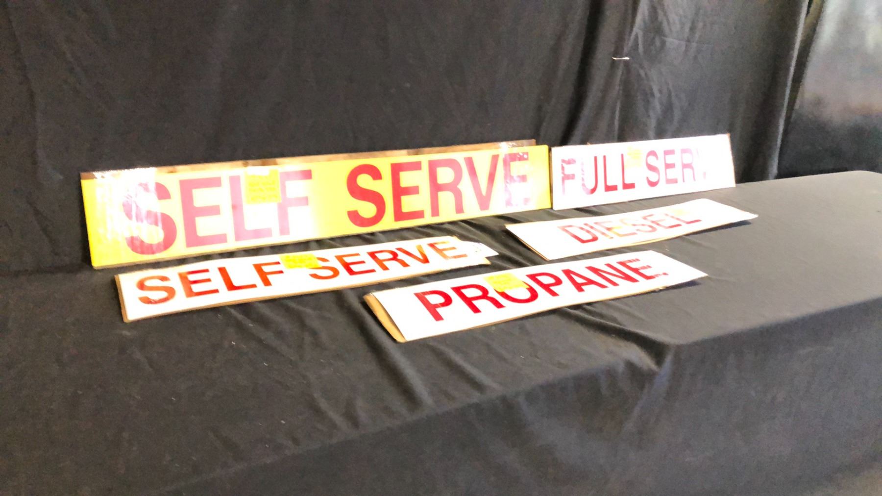 4 ASSORTED SELF SERVE, PROPANE AND DIESEL SIGNS