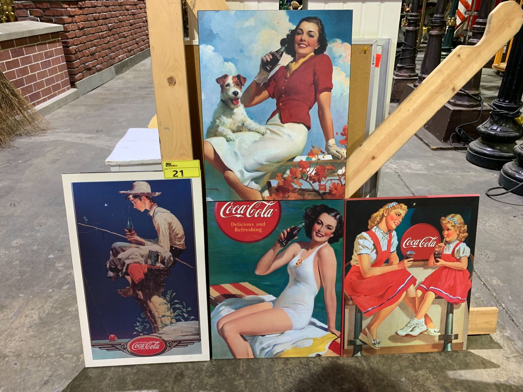 4 ASSORTED WOOD PLAQUE COCA-COLA ADVERTISEMENTS