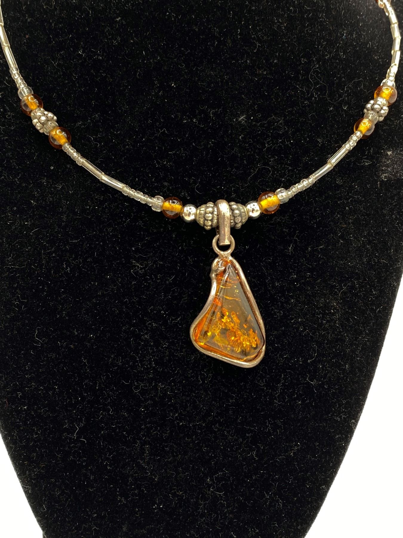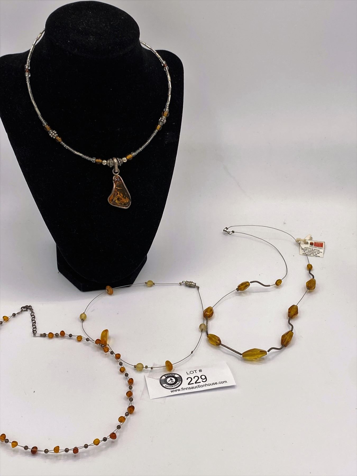 4 Amber and Wire Necklaces