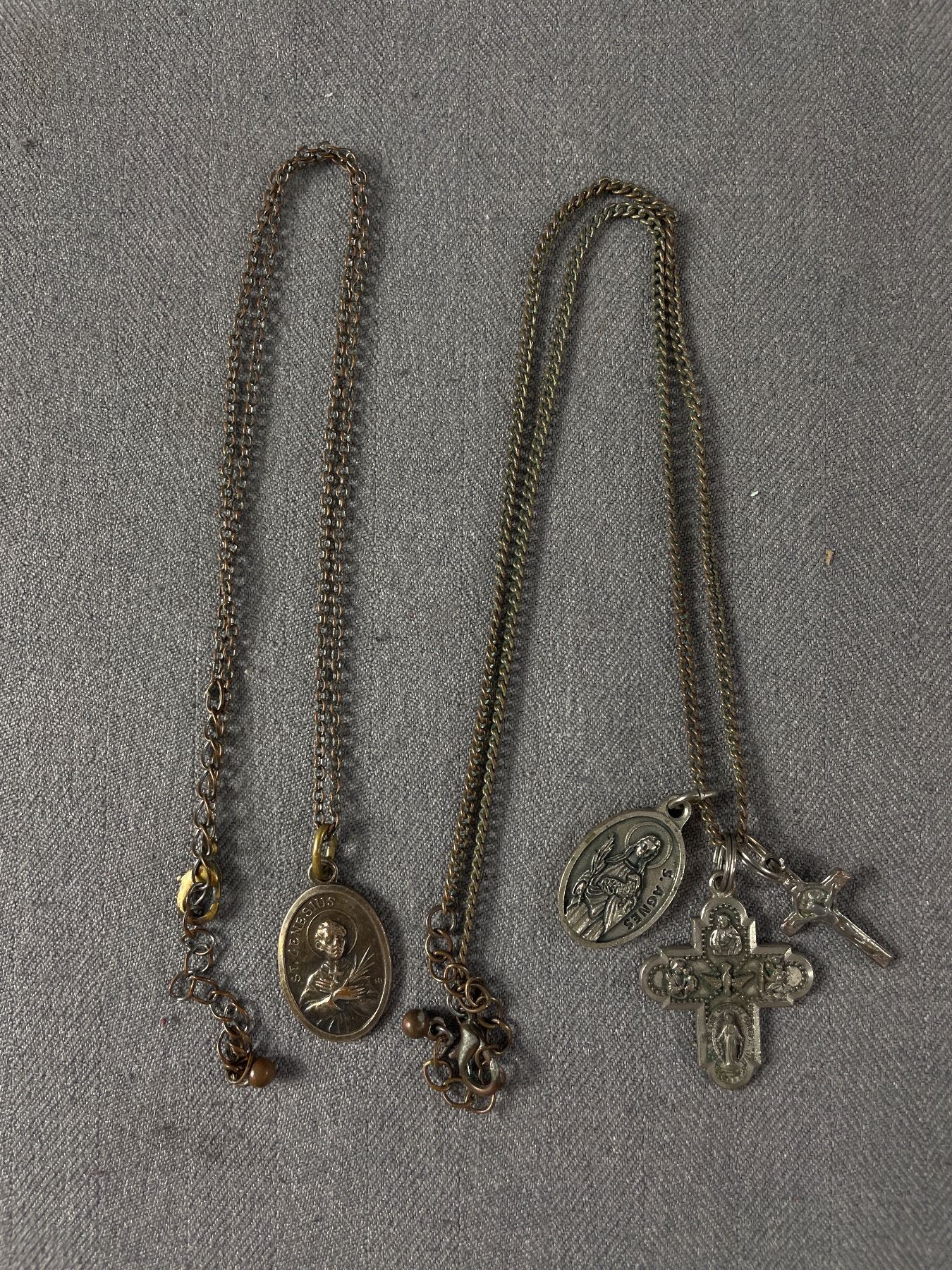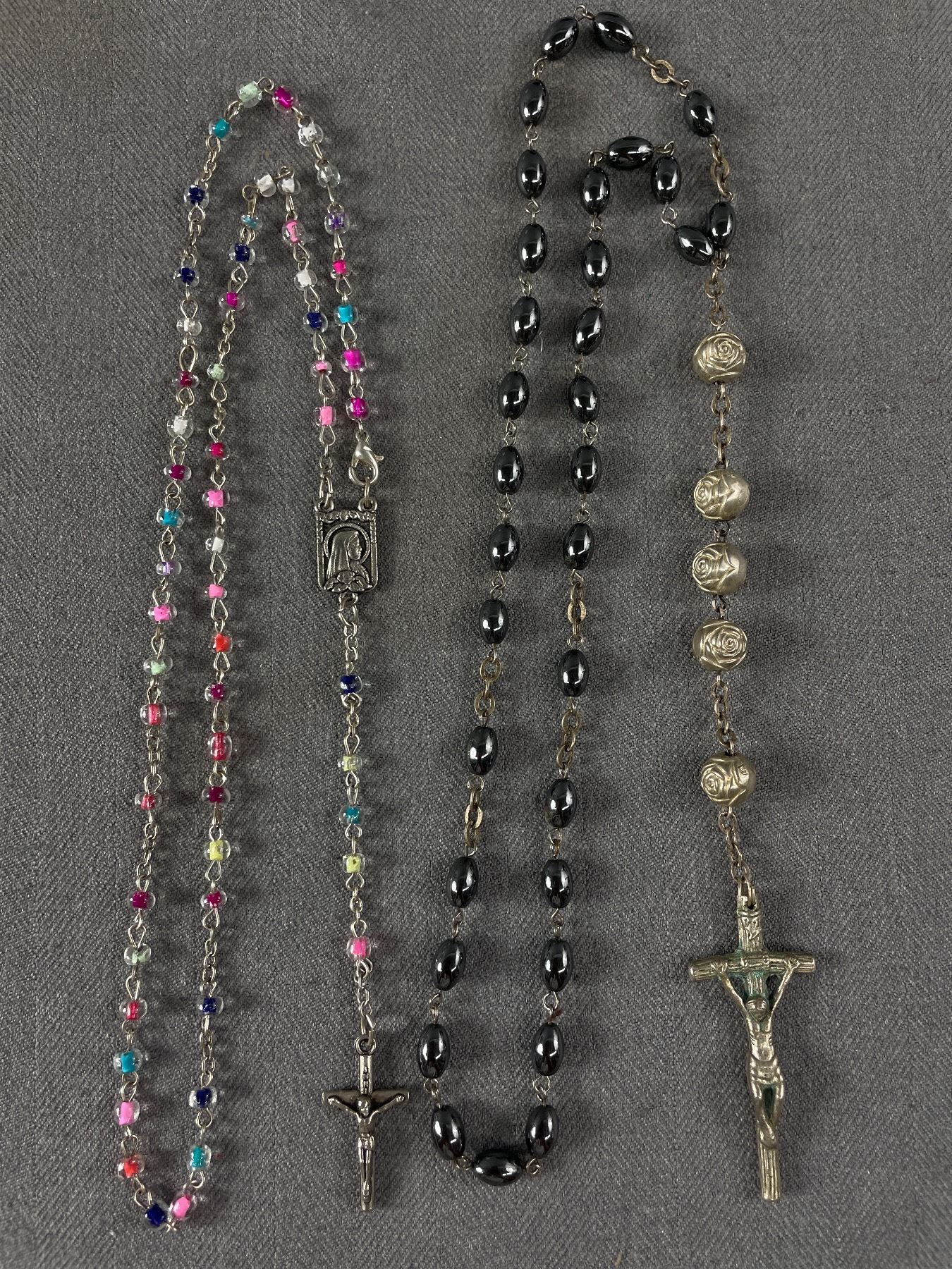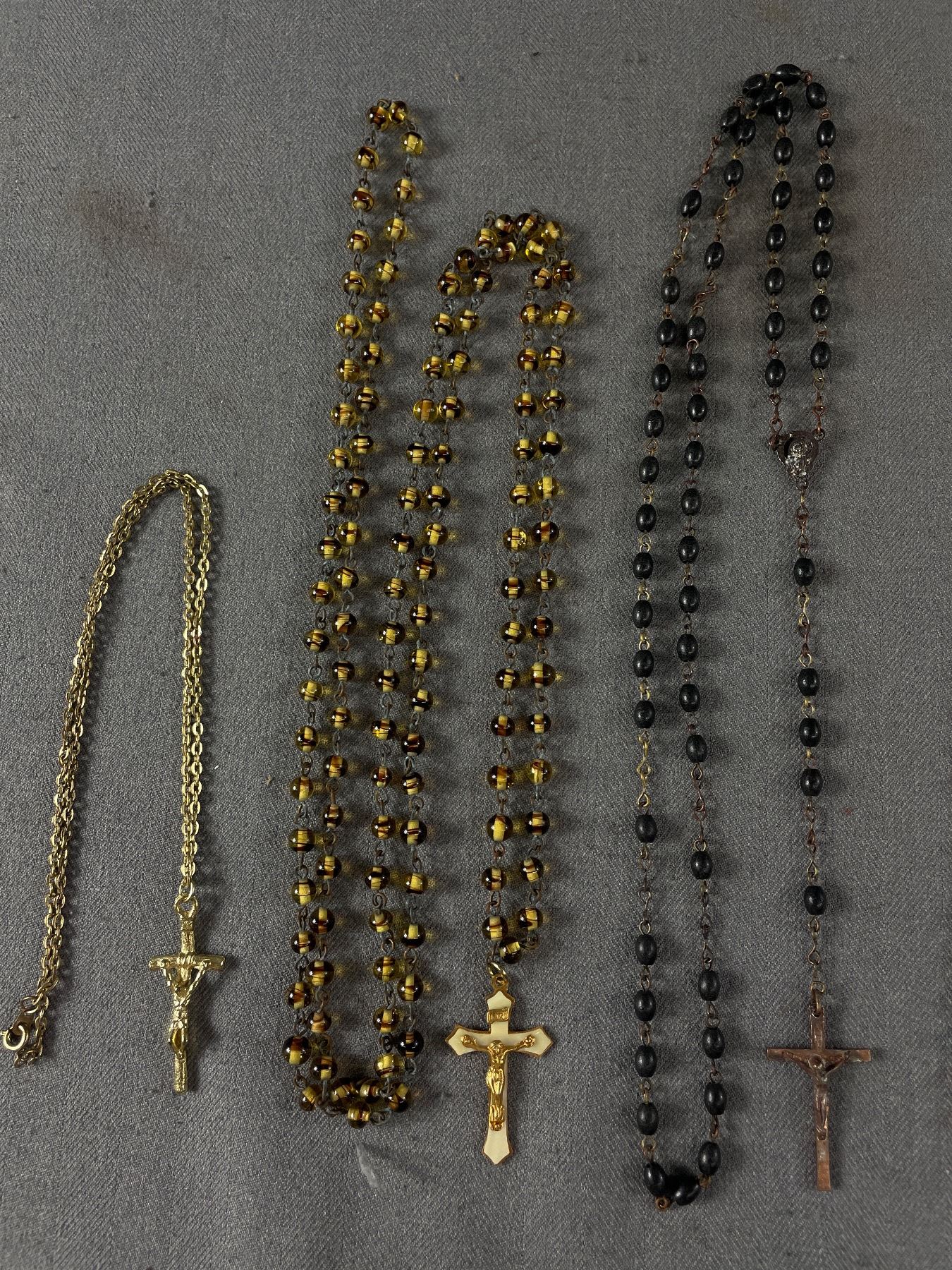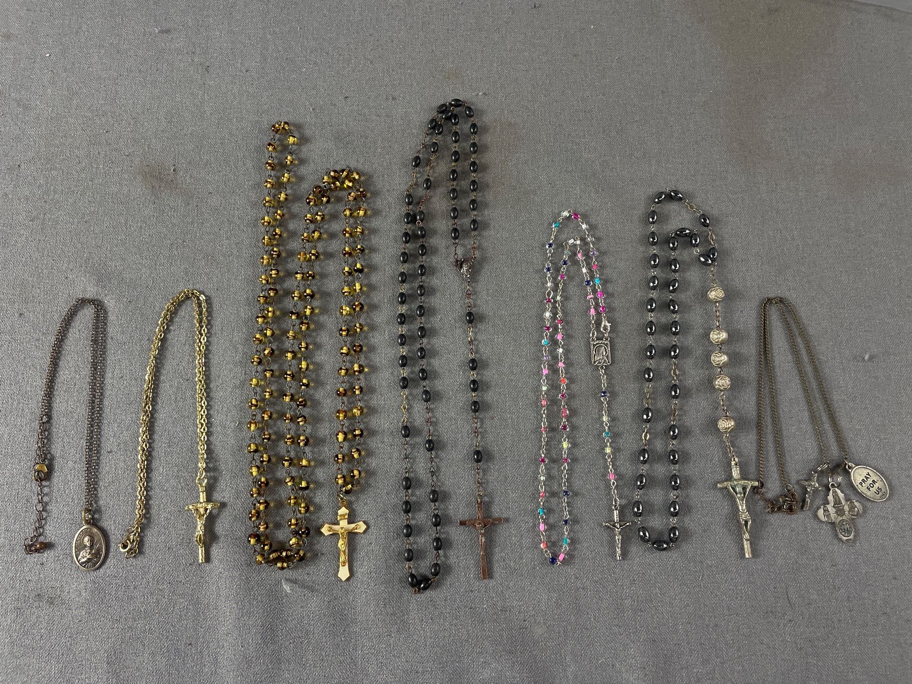 4 Antique Or Vintage Rosaries & 3 Religious Vintage Necklaces