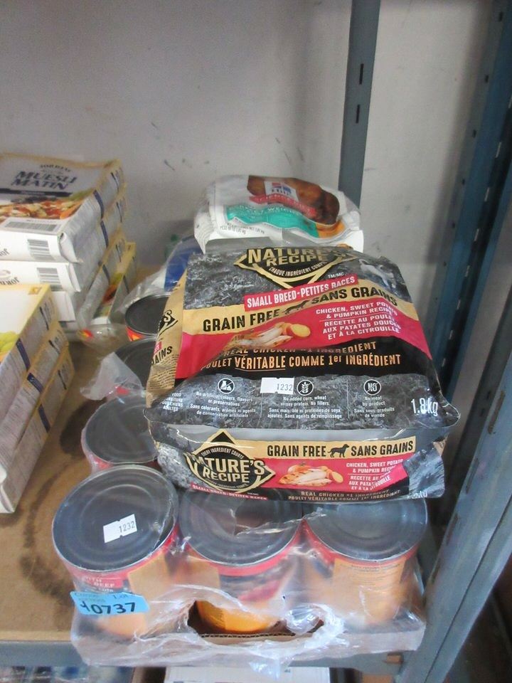 3 Assorted bags of dry dog food & case of 12 wet dog food