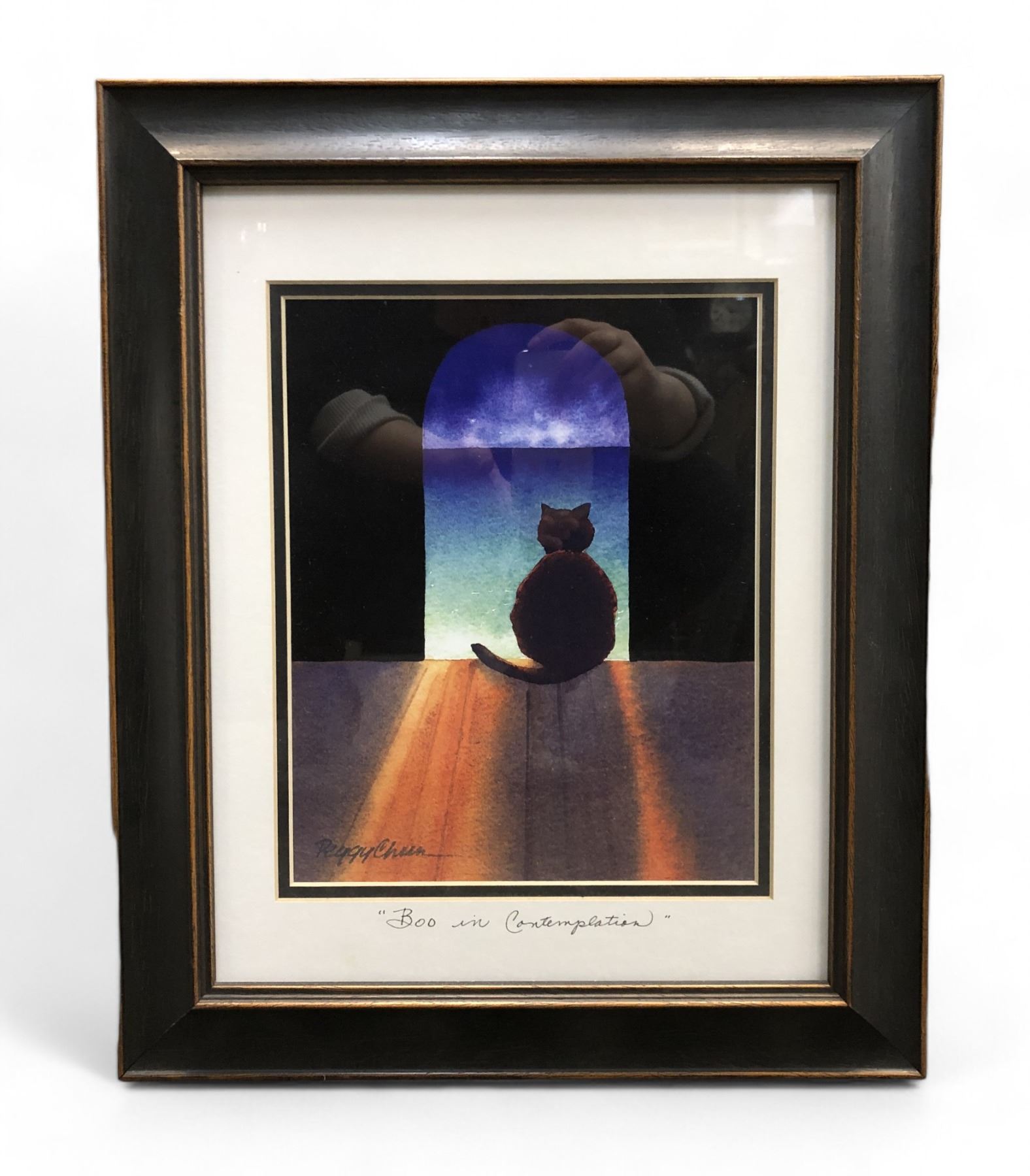4 Assorted Framed Pictures, Dolphins, Flowers And Cats