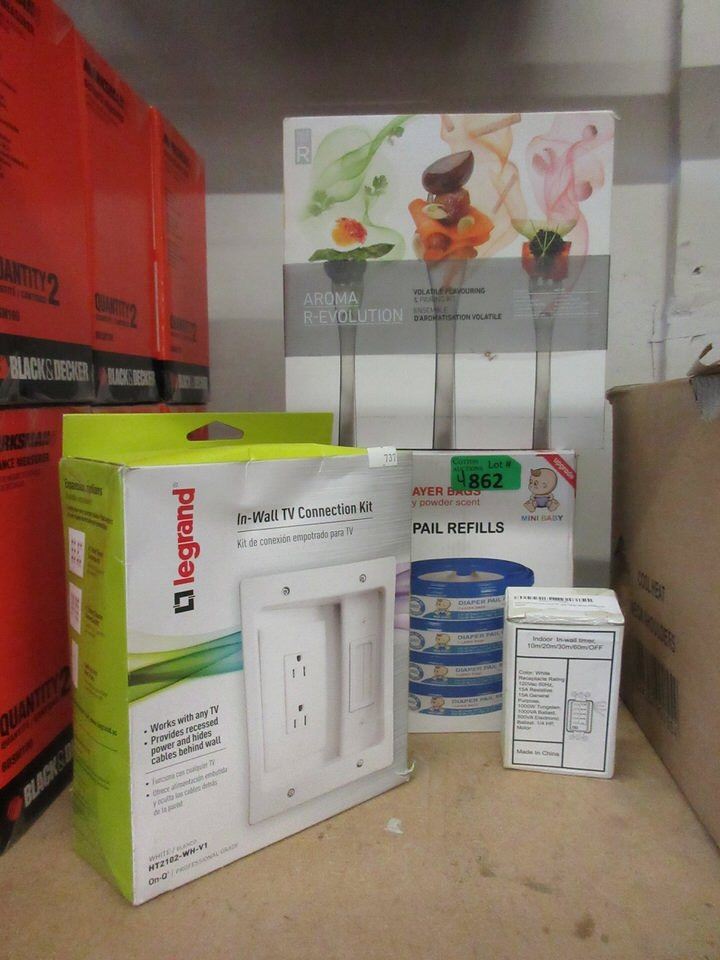 Flavouring kit, diaper pail refills, wall timer & in wall TV connection kit.