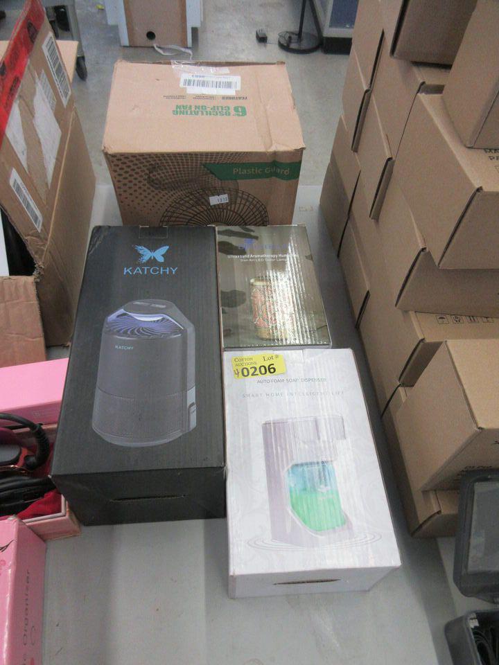 Automatic soap dispenser, ultrasonic aromatherapy humidifier, 6" clip on lamp & insect trap.