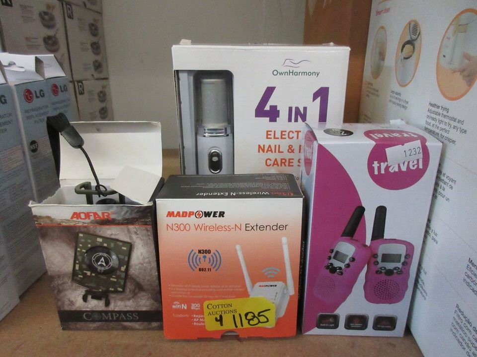 Compass, Nail and Foot Care set, Wireless N Extender, and Mini Walkie Talkies.